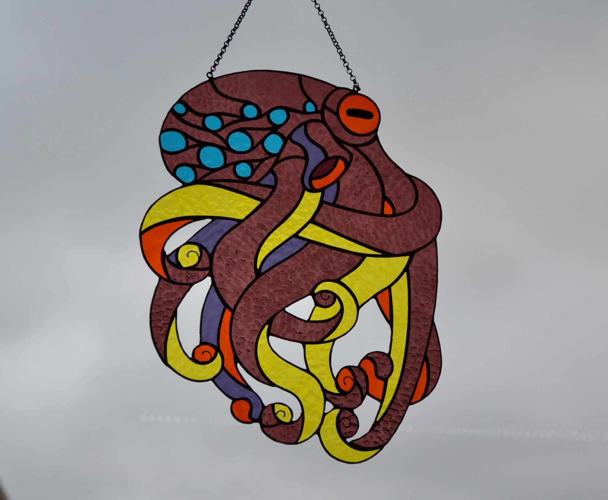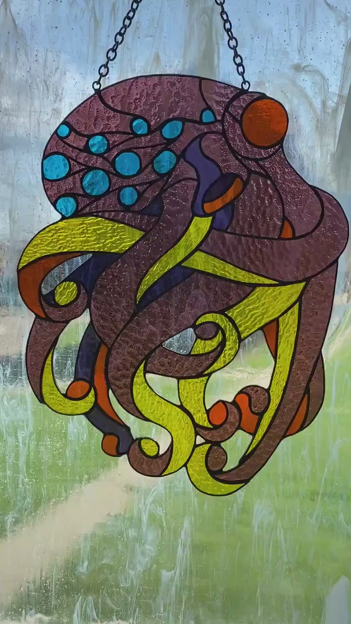 Stain glass Octopus suncatcher Window hanging panel Stained glass animals Mother's day gift Ocen decor Wall decor Tiffany style