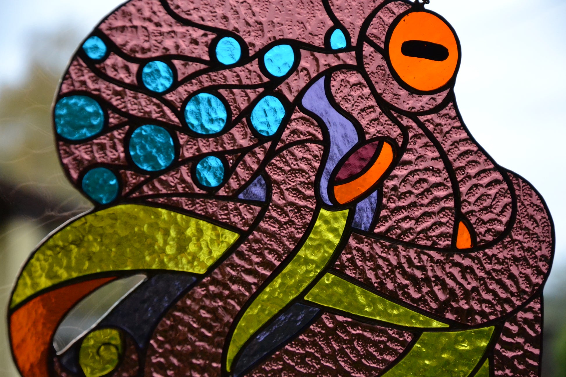 Window hanging suncatcher made of stained glass pieces by my own disign.