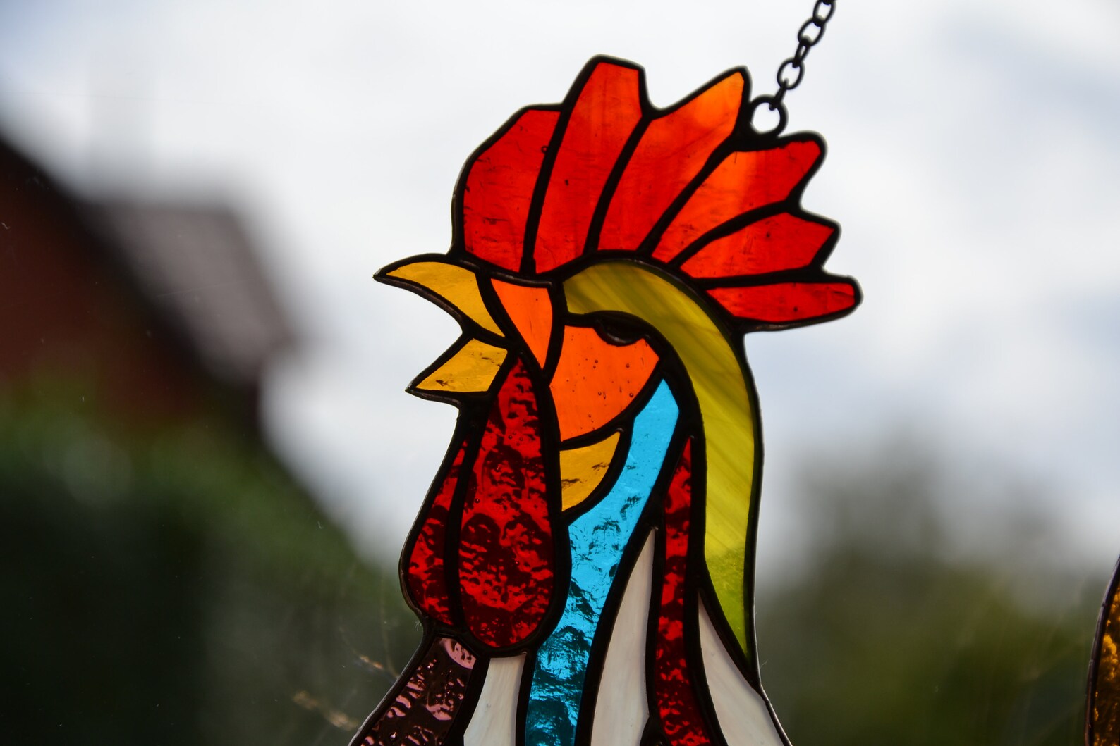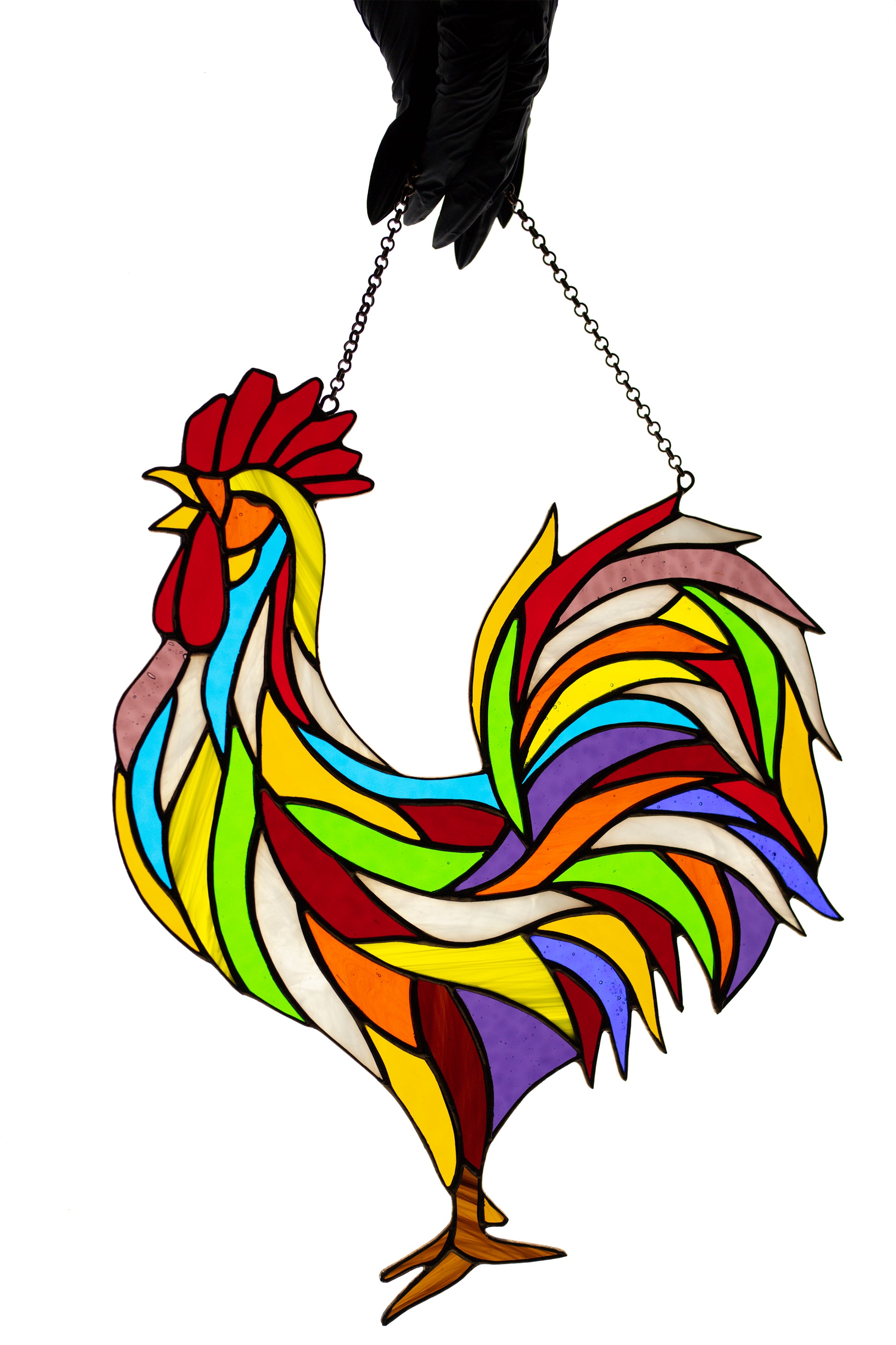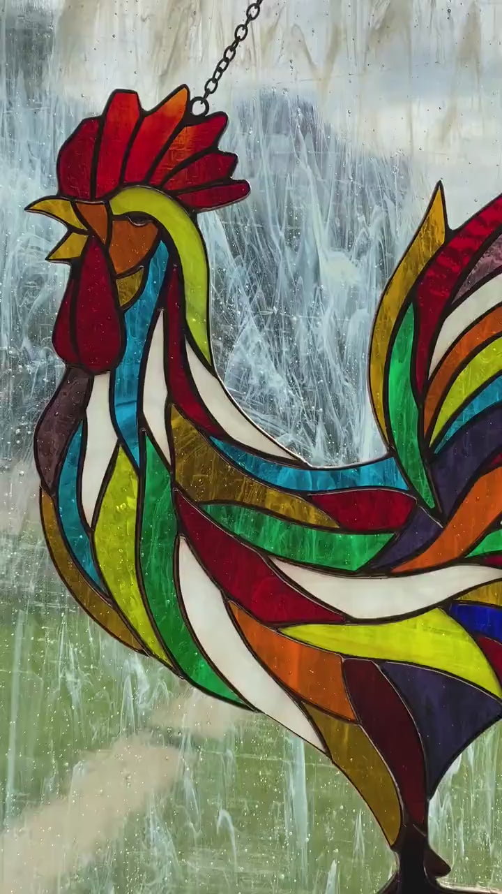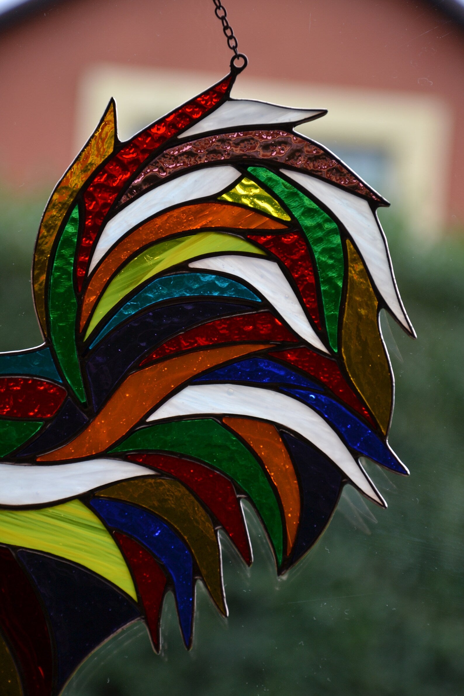 Stain glass suncatcher Rooster window hanging Stained glass bird Garden decor Glass chicken Wall decor Friendly gift