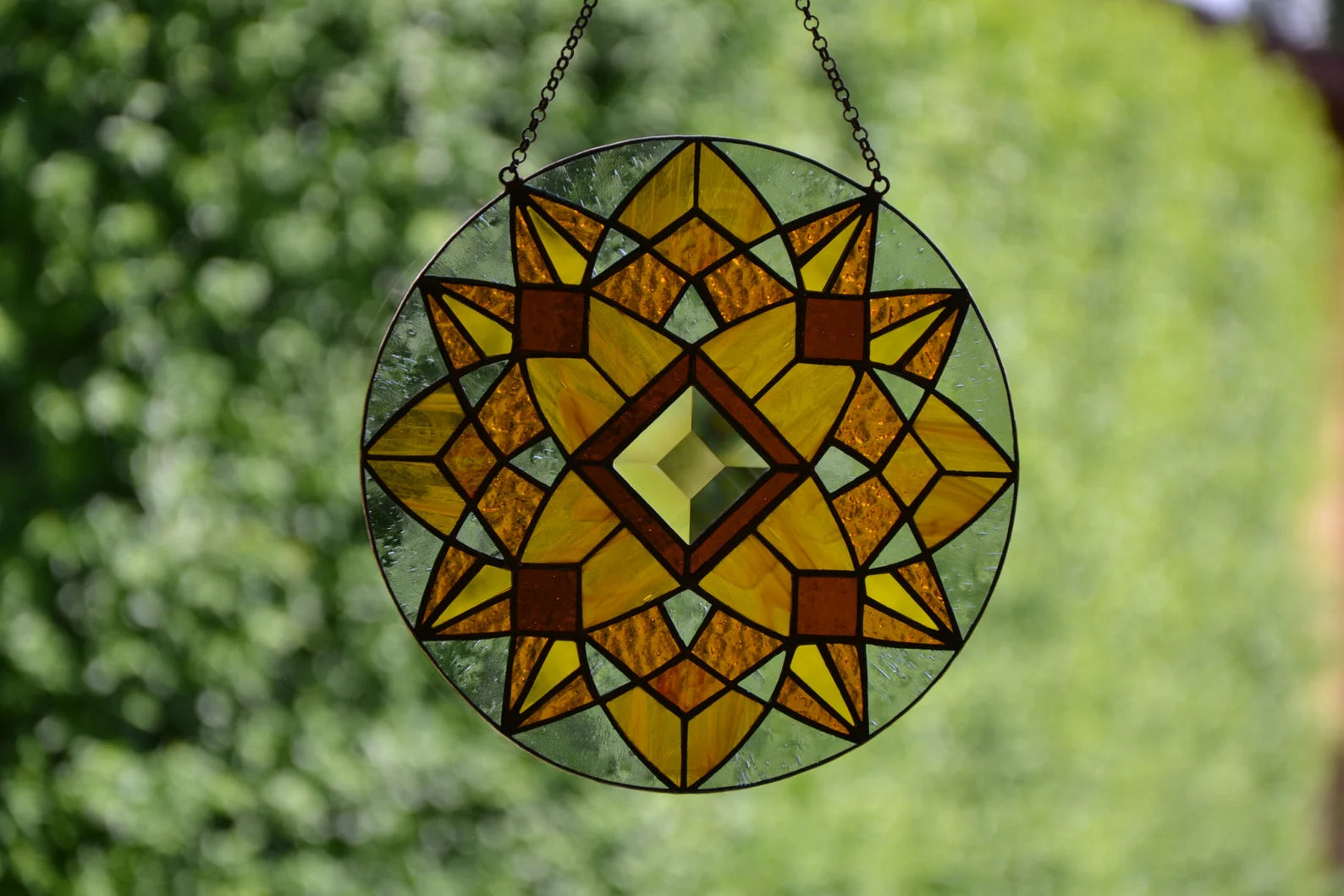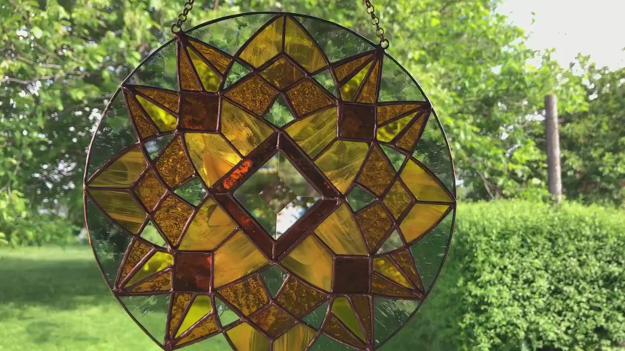 Stain slass sun catcher Honey mandala suncatcher Stained glass window hanging Glass art Mother's day gif Wall decor Xmas gift Sun glass