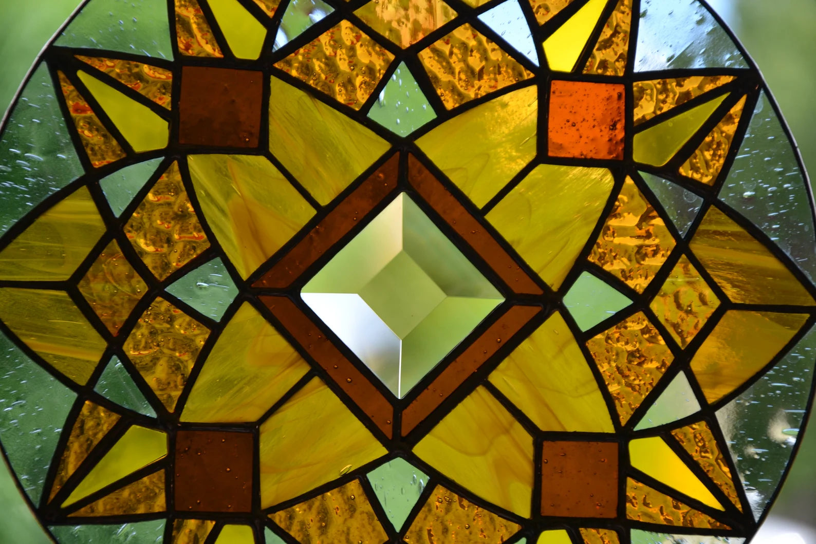 Window hanging suncatcher made of stained glass pieces by my own disign.