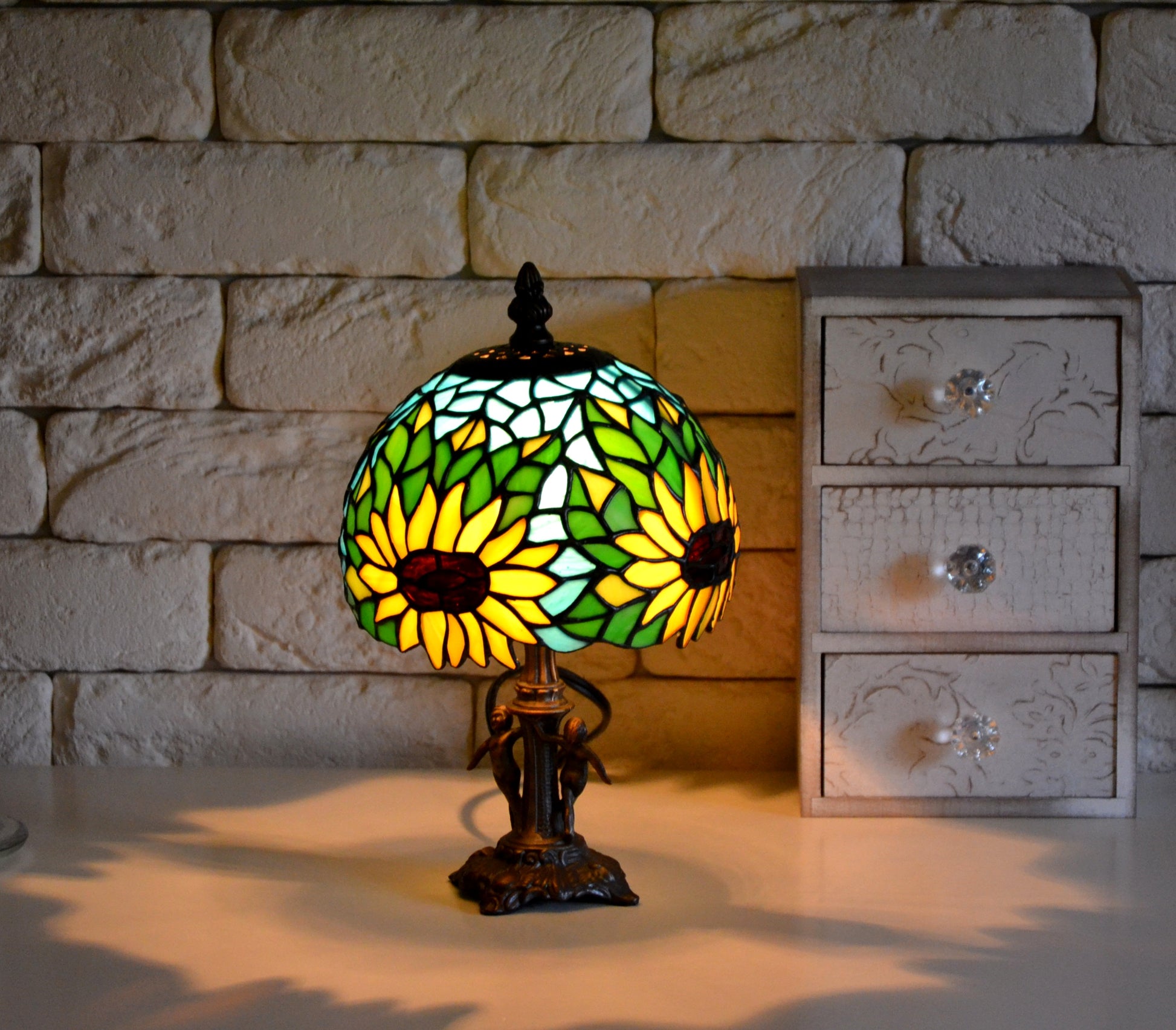Stained glass lamp Tiffany style Bed side lamp Sunflower pattern Glass flowers Mother's day gift