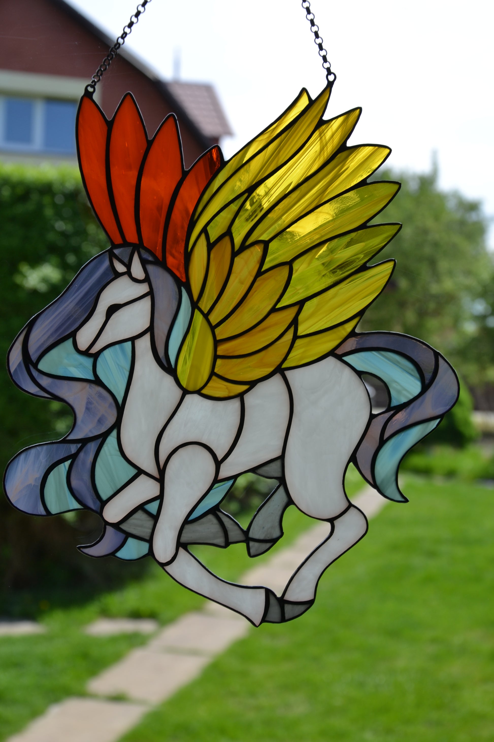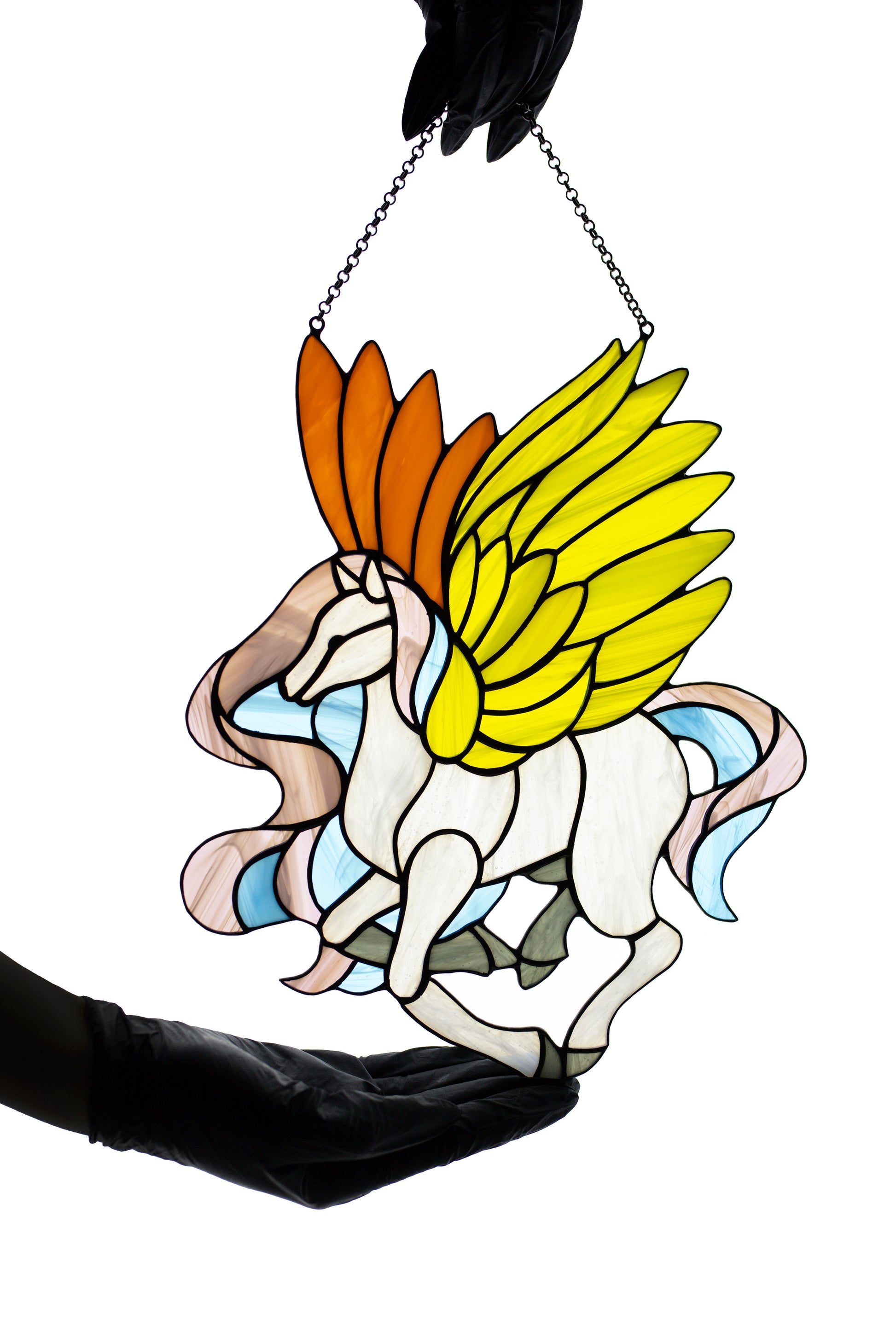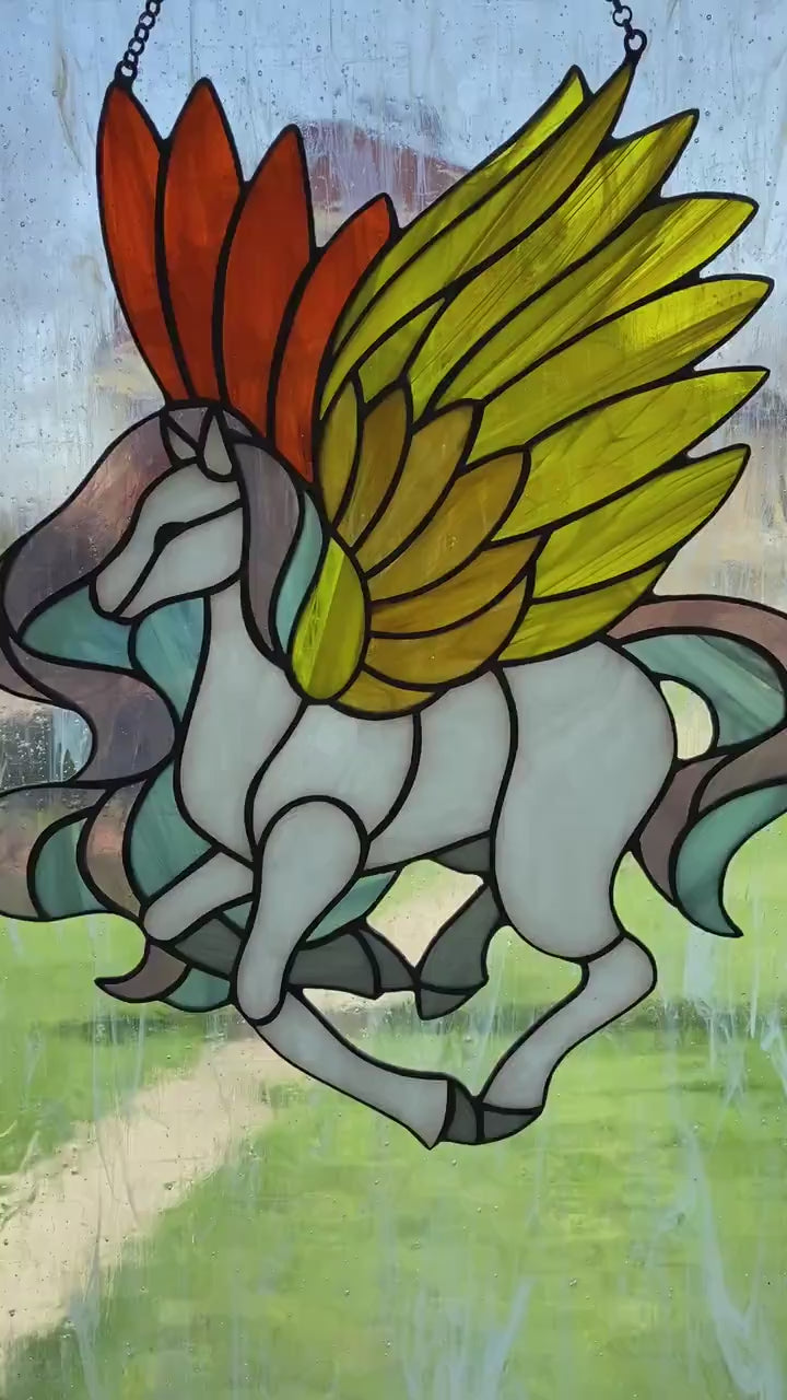 Stained glass sun catcher Pegasus Stained glass window hanging Christmas gift Wall decor Stain glass panel Glass horse Fairy tale character