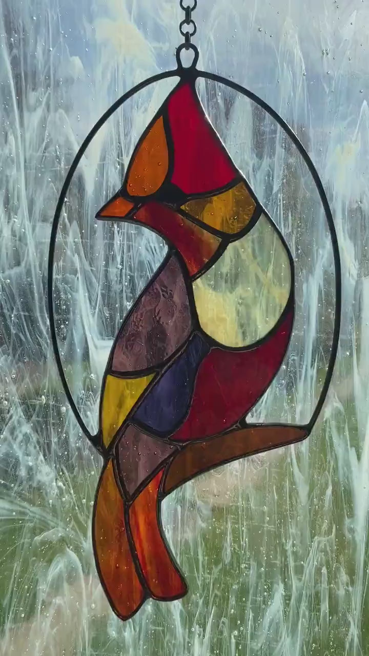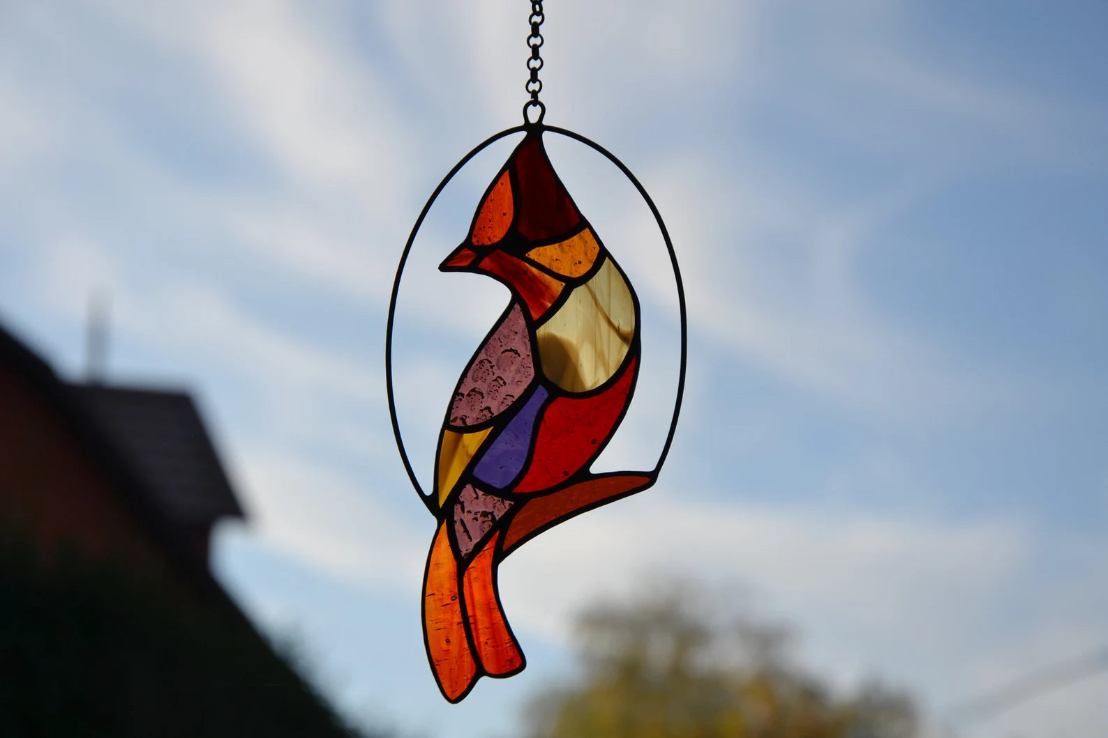 Stained glass suncatcher Bird stain glass gift Window hanging panel Tiffany style glass Garden decor Wall hanging Stain glass pendant