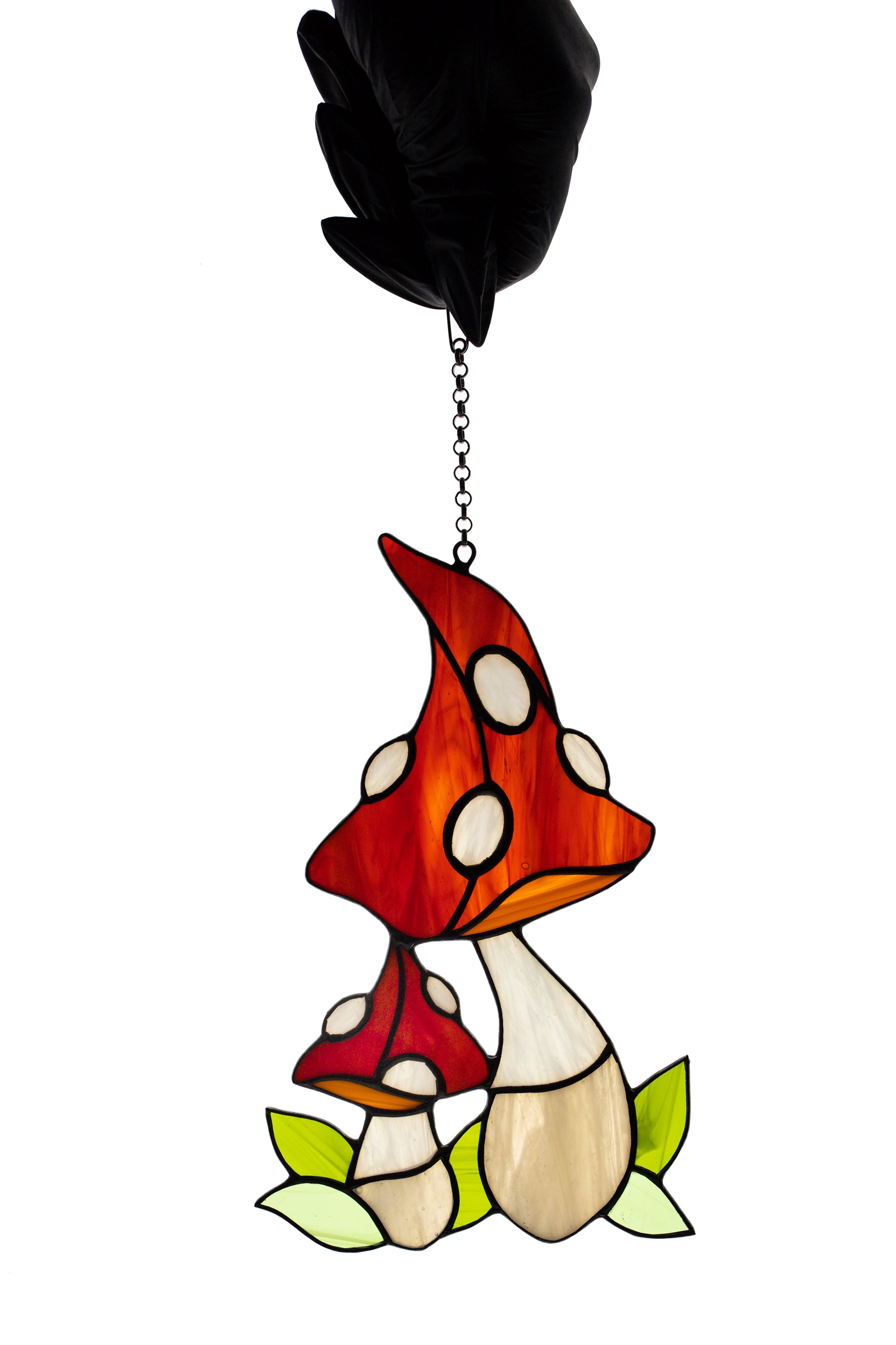 Stained glass suncatcher Glass mushroom Stain glass window hanging Forest plants Wall decor Friendly gift Kitchen decor Garden hanging