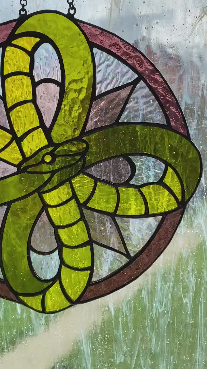 Stained glass suncatcher Infinity snake mandala suncatcher Stained glass window hanging Home decor Birthday gift Garden decor Round hanging