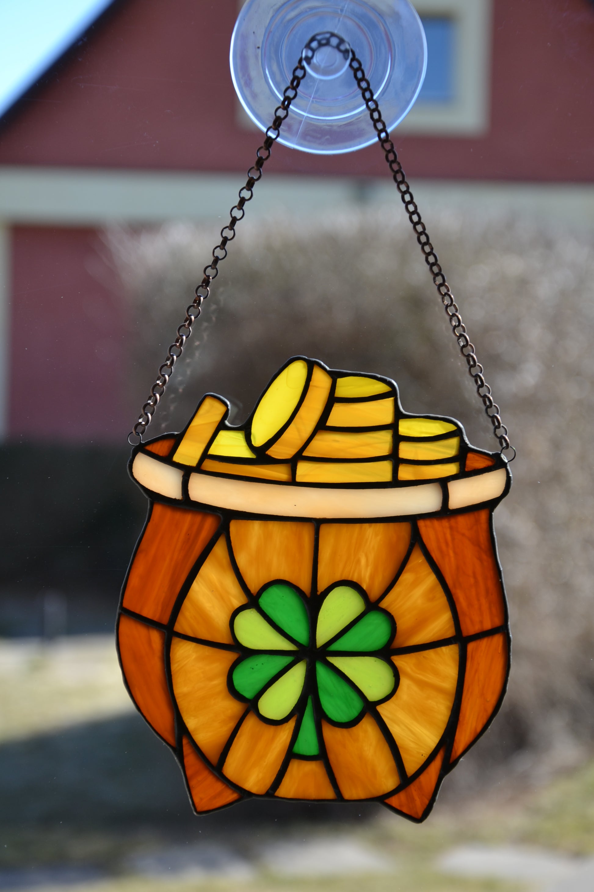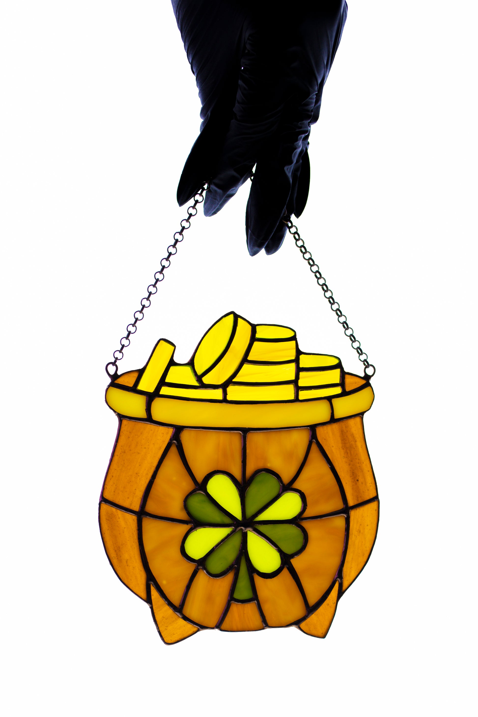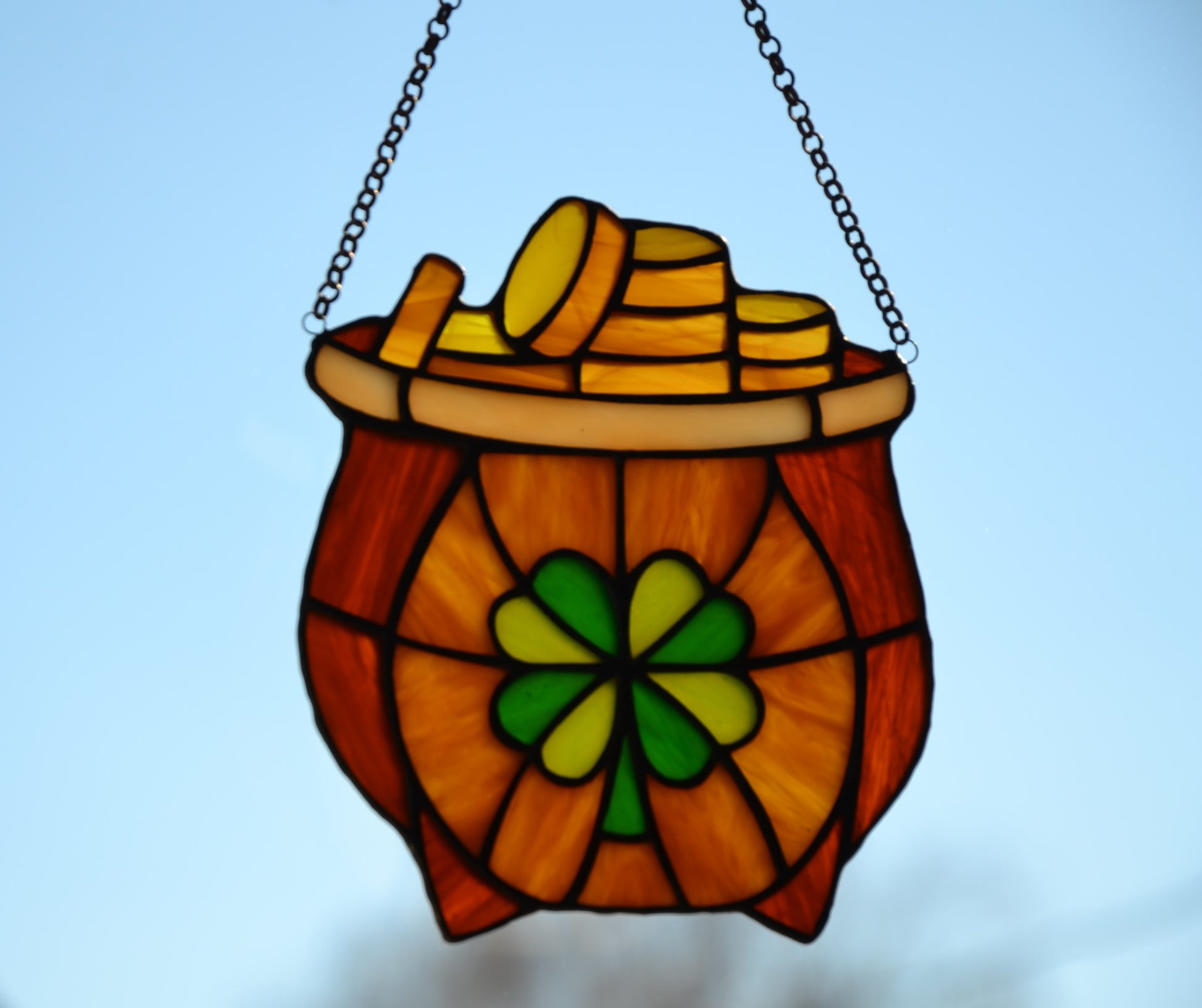 Stained glass suncatcher Leprechaun pot full of gold Protective amulet Window hanging Irish decor Mother's day gift