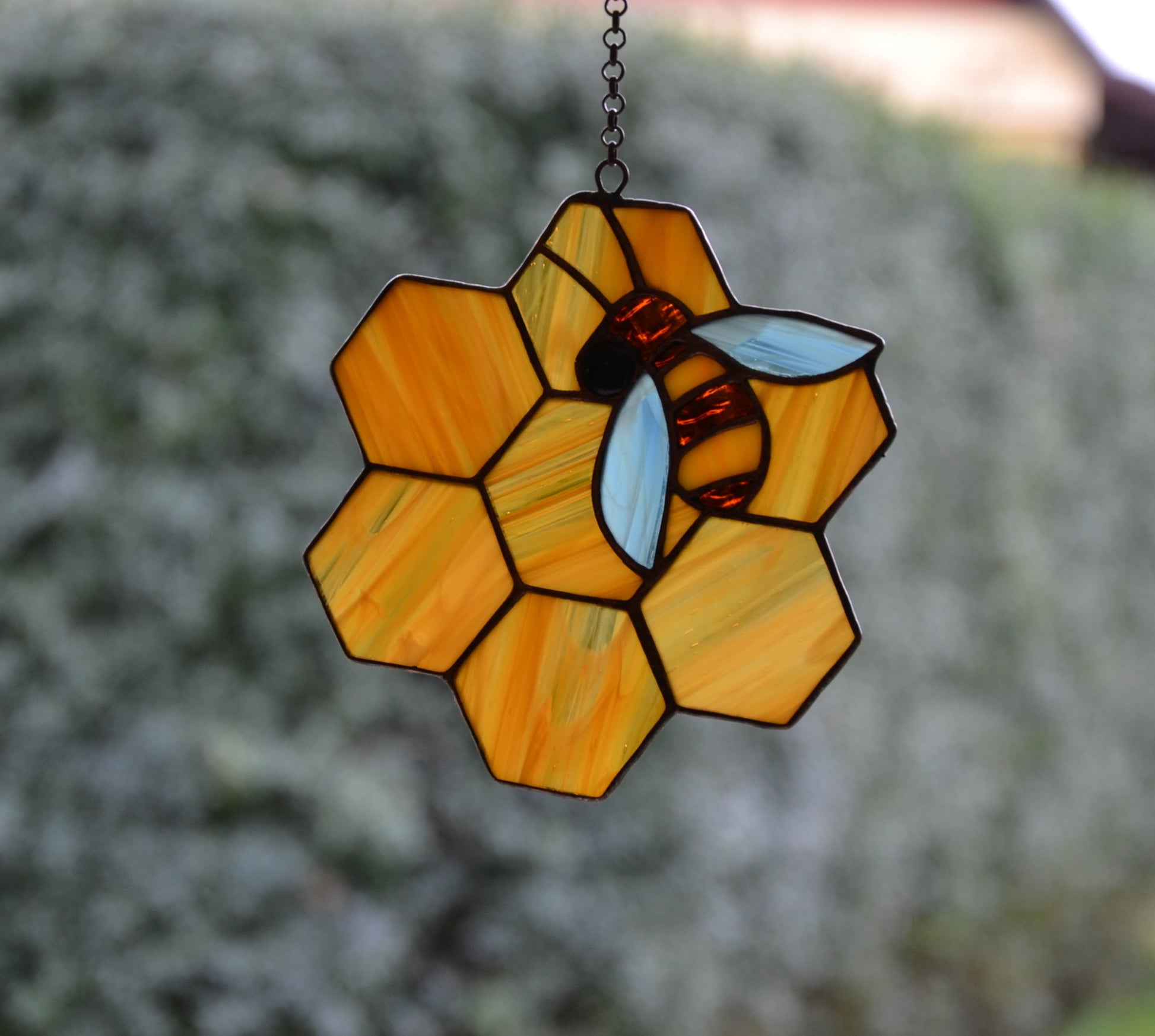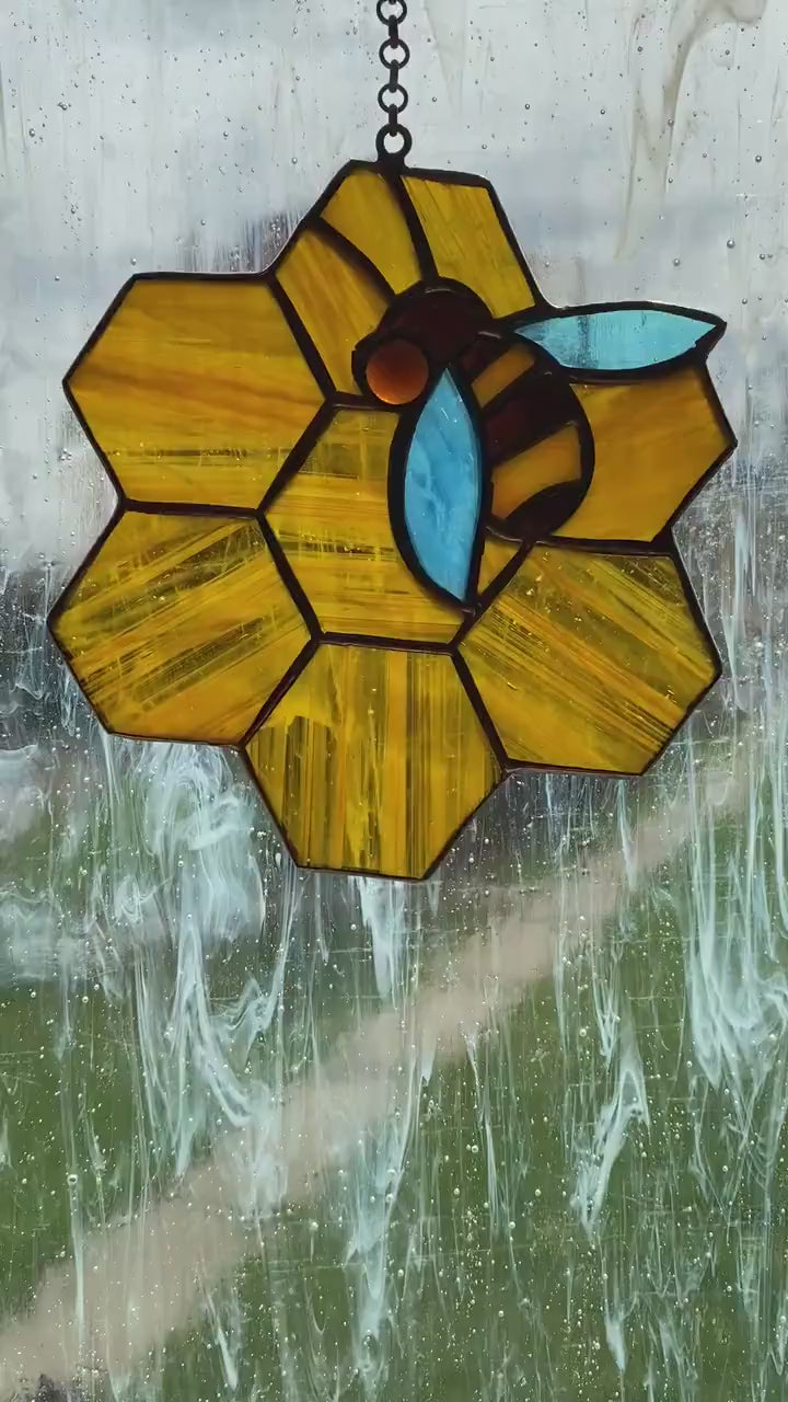 Bee suncatcher Window hanging Mother's day gift Glass bug Honey and bee Stained glass art Stain glass sun catcher Christmas gift