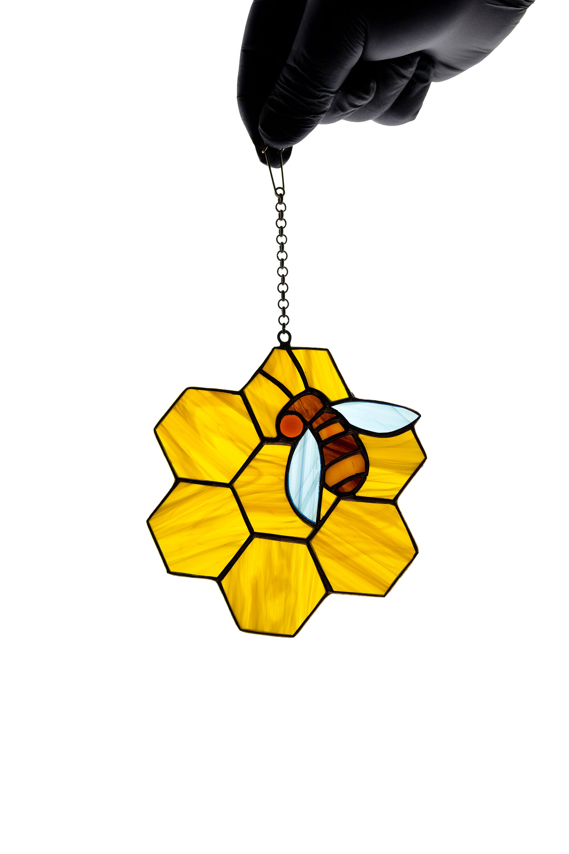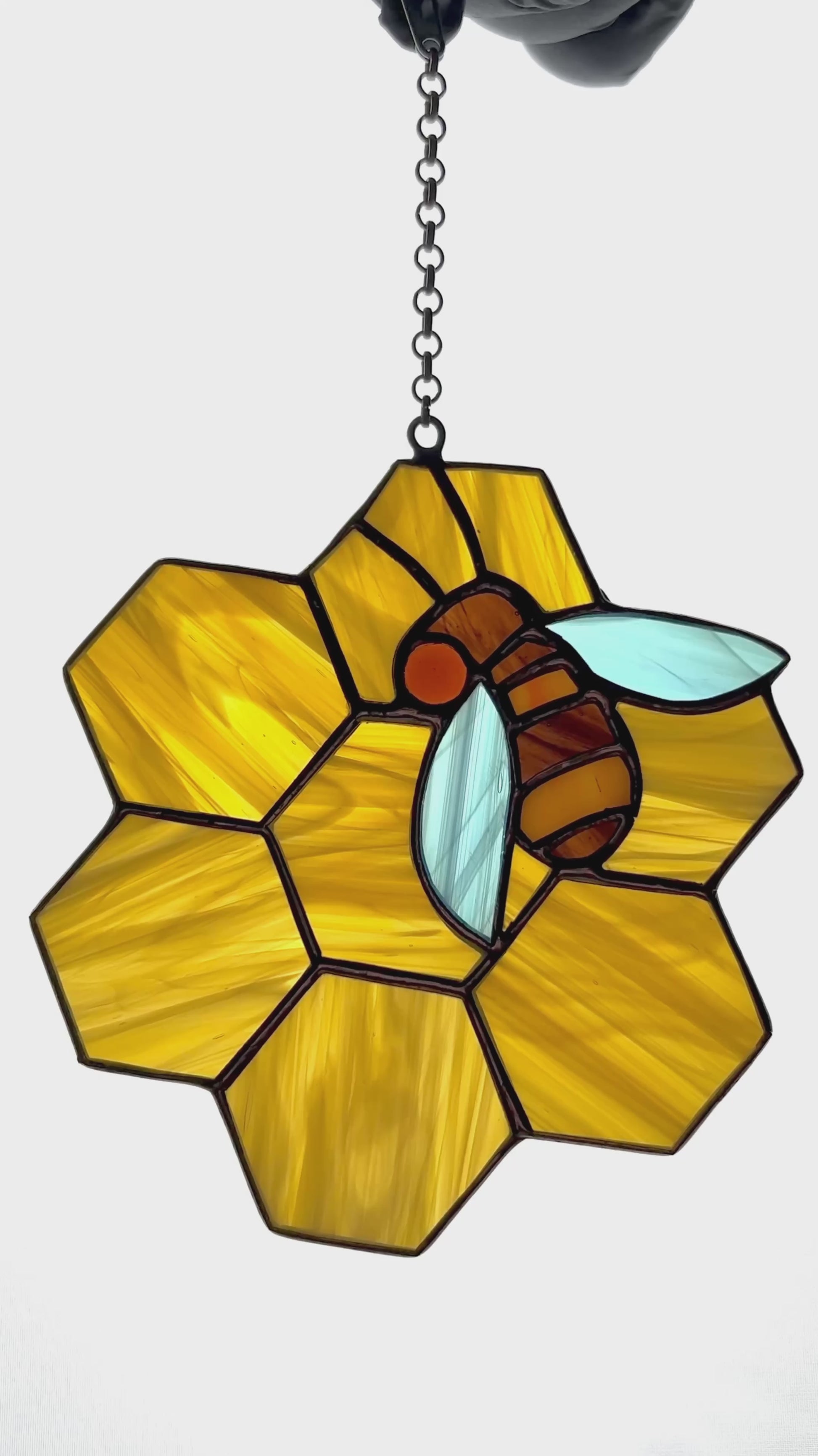 Add a touch of enchantment to your home with our exquisite Bee Stained Glass Suncatcher. Meticulously handcrafted, this stunning suncatcher captures the beauty of a bee in flight, its delicate wings and intricate details brought to life through vibrant stained glass. As sunlight filters through, the suncatcher illuminates with a dazzling array of colors, creating a mesmerizing display that will captivate any onlooker. Perfect for adorning windows, gardens, or any sunlit space, our Bee Stained Glass Suncatcher is not only a visual delight but also a celebration of the vital role bees play in our ecosystem. Bring the elegance of stained glass and the charm of nature into your home with this captivating suncatcher, a true statement piece that will leave a lasting impression.
