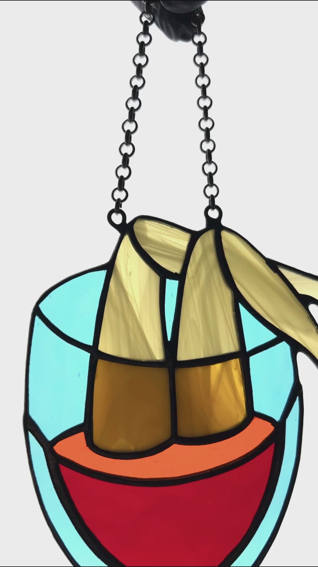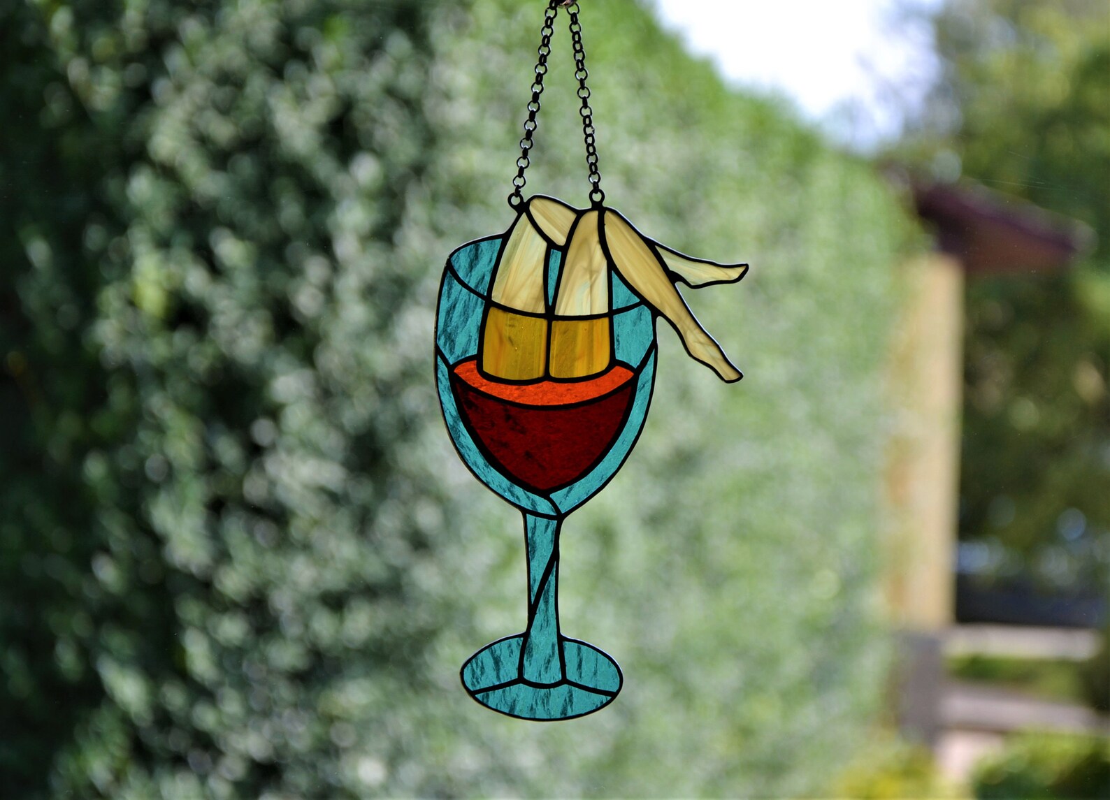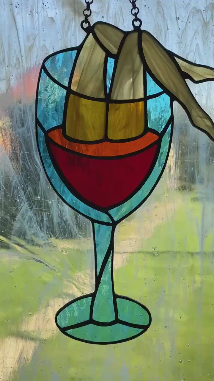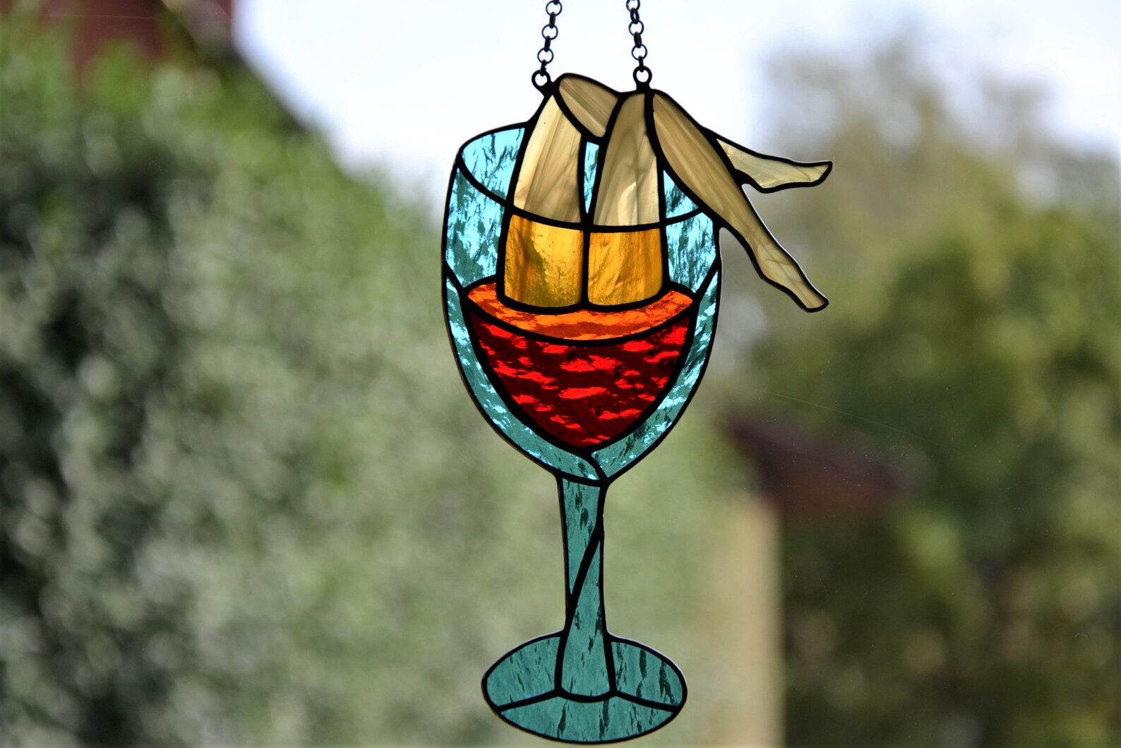 Wine diving window hanging suncatcher made of stained glass pieces by my own disign.