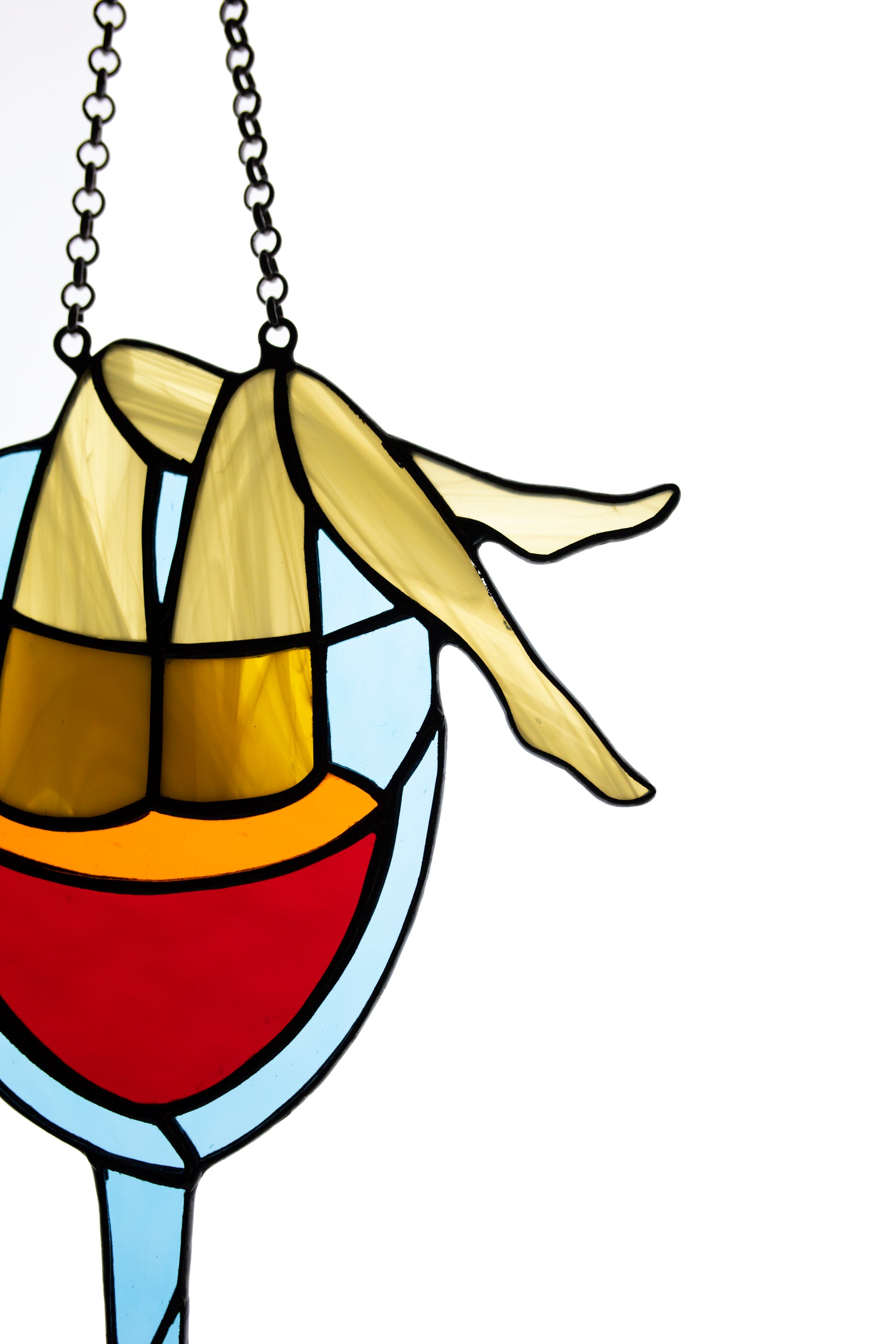 Suncatcher Stained glass window hanging Wine diving Stain glass art Wall decor Gift for her Wine glass Joke gift Handmade gift Xmas gift