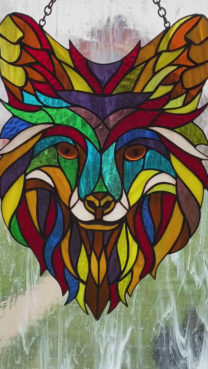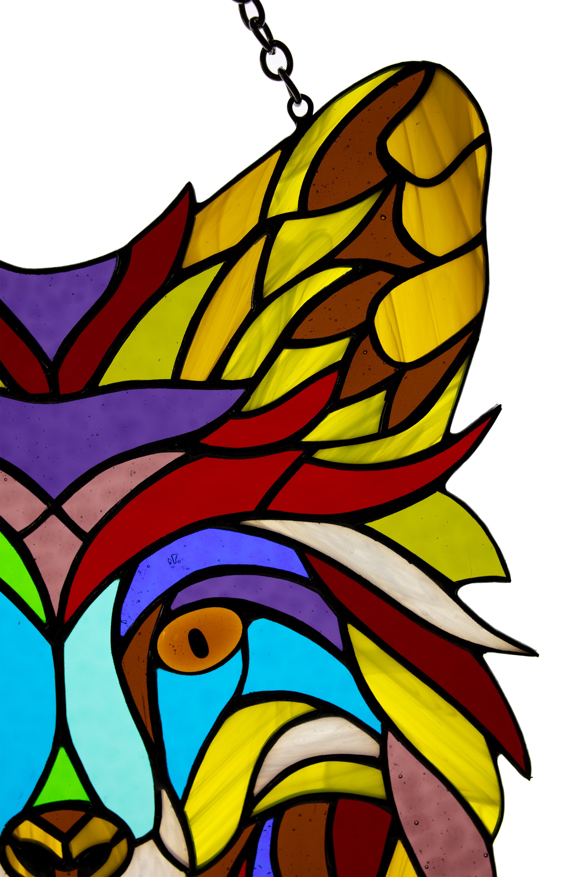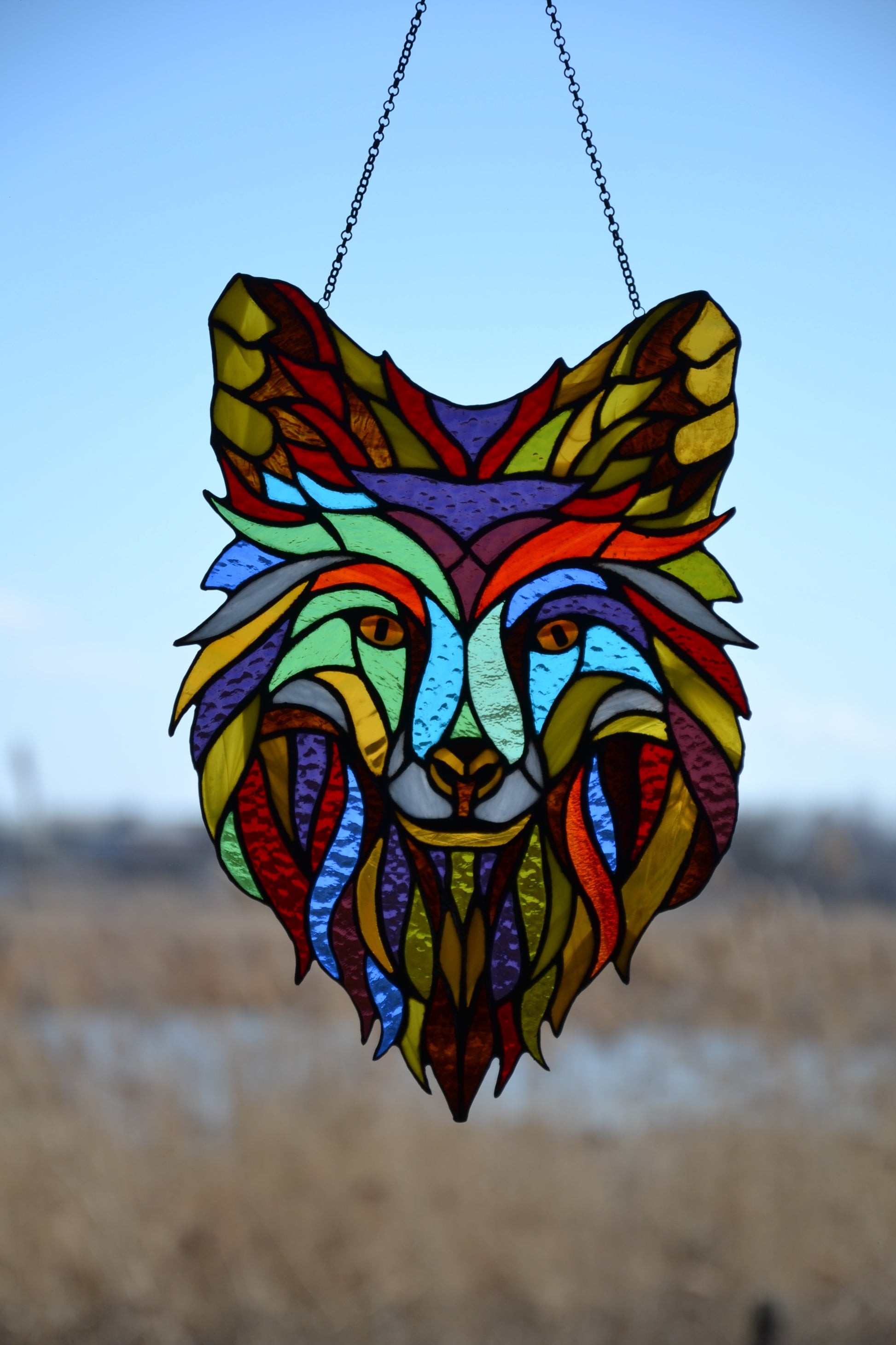 Suncatcher Stained glass window hanging Wolf glass Pop art Stained glass panel Wall decor Gift for him Stain glass pendant