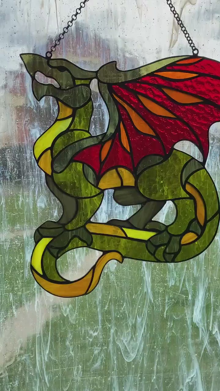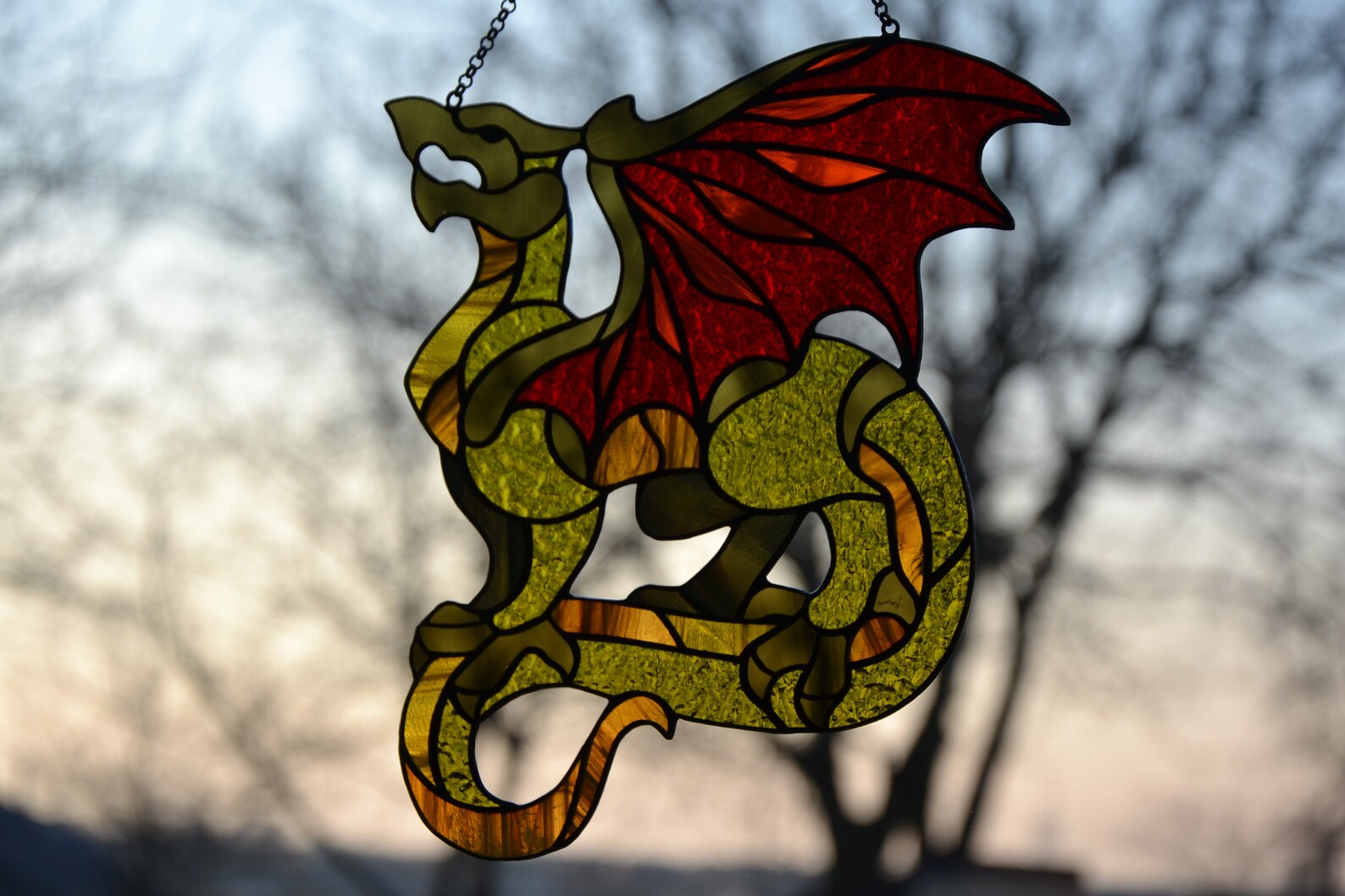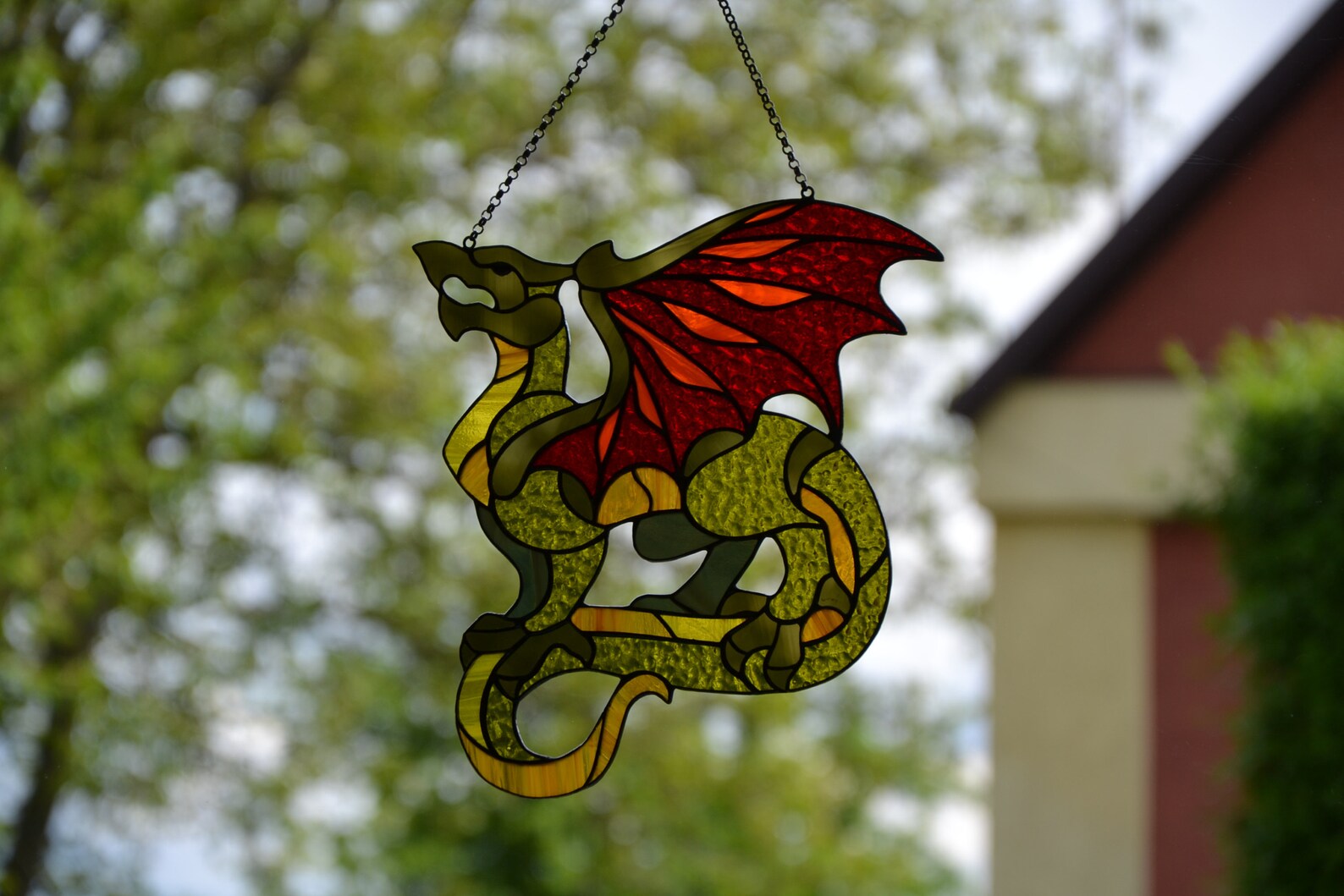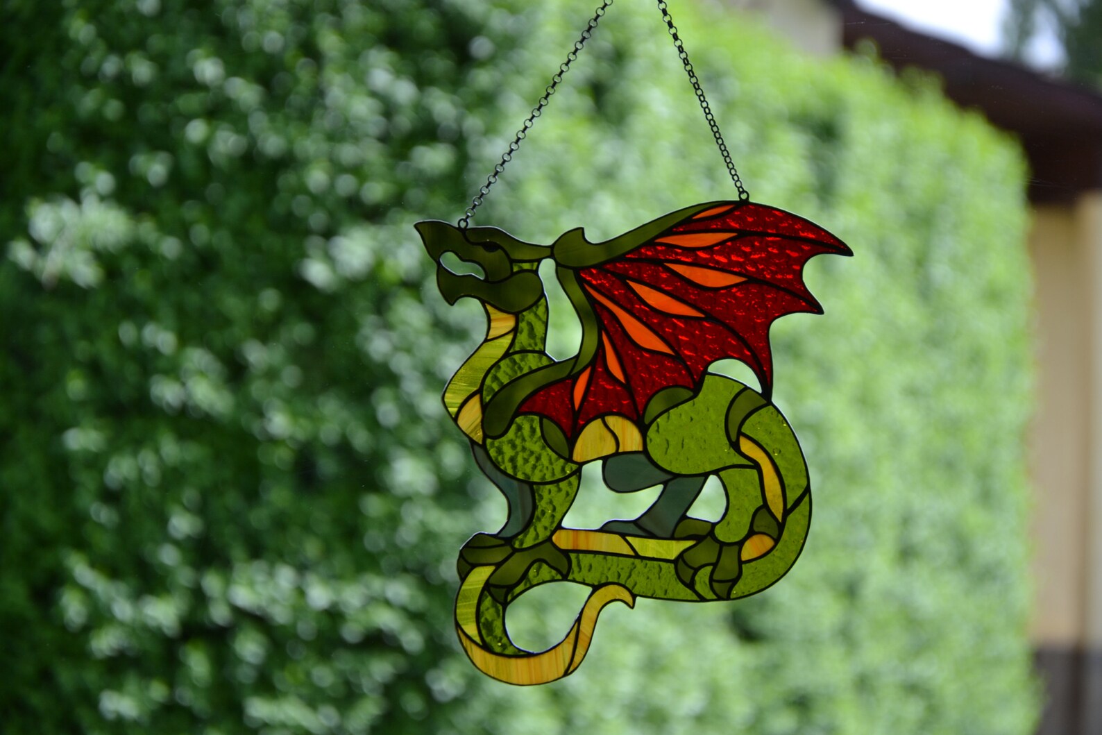 Winged dragon suncatcher Window hanging stained glass sun catcher Wall decor Gift for him Stain glass decor Stained glass sun catcher