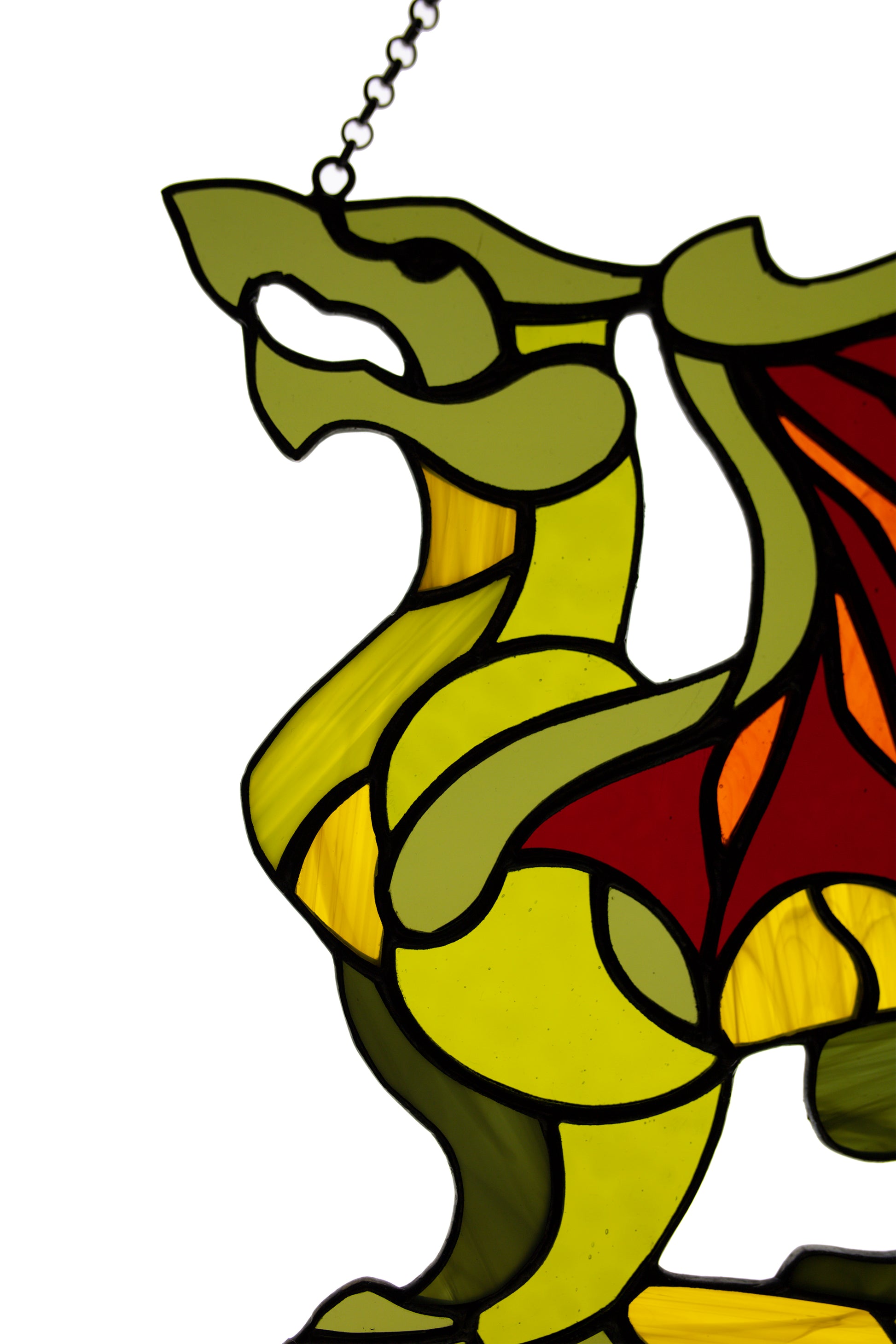 Winged dragon window hanging suncatcher made of stained glass pieces by my own disign.