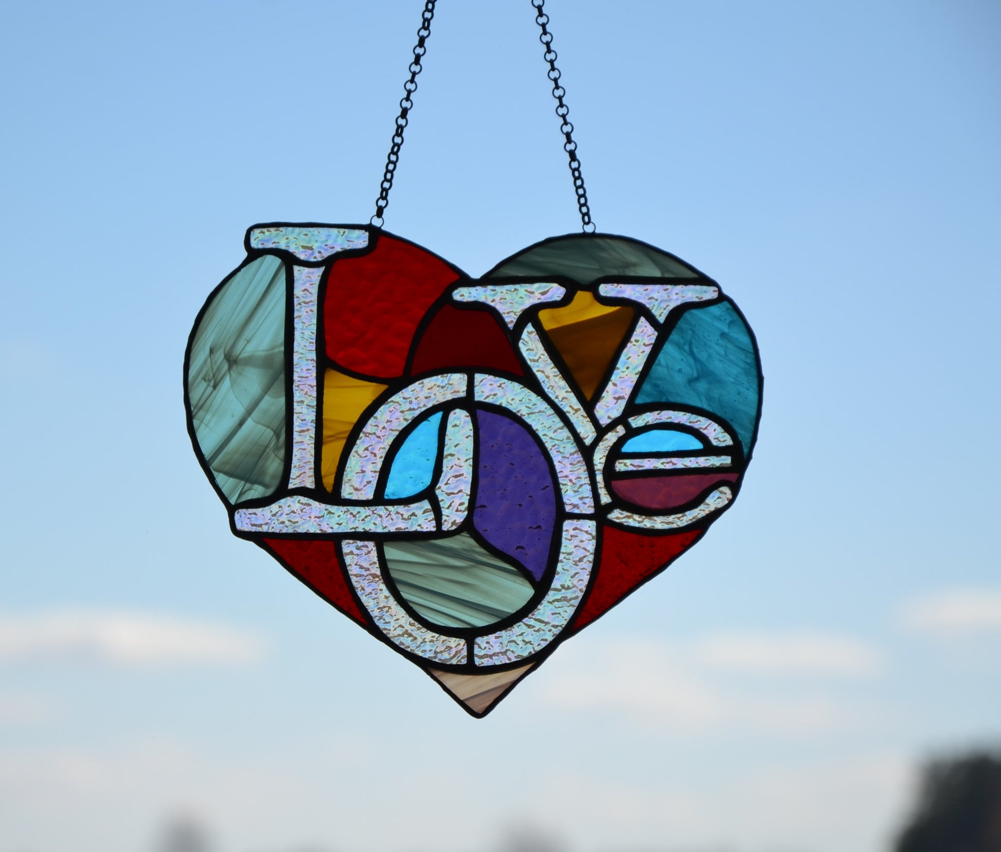 Heart suncatcher Stained glass window hanging Glass garden decor Love suncatcher Mother's day gift Christmas gift Friendly gift Custom glass