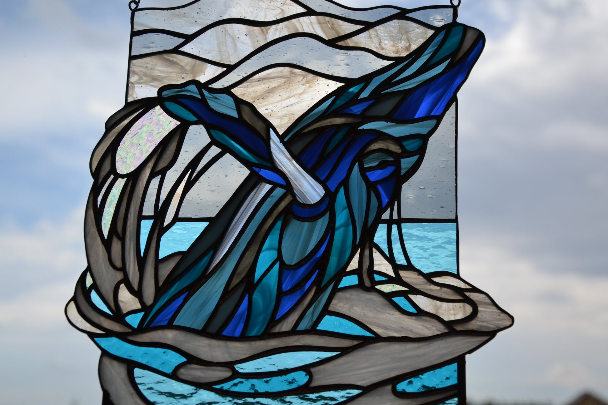 Stained glass panel Whale Window hanging picture Stained glass suncatcher Ocean Wall decor Travel memories Stained glass gift