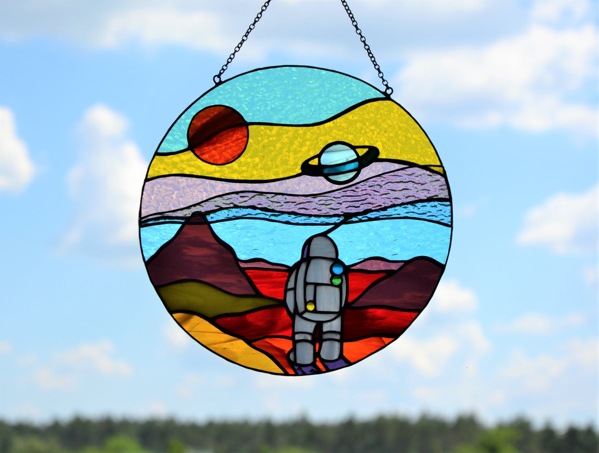 Stained glass suncatcher Space landscape Window hanging sun catcher Christmas gift Stained glass art Wall decor Mars mission Round panel
