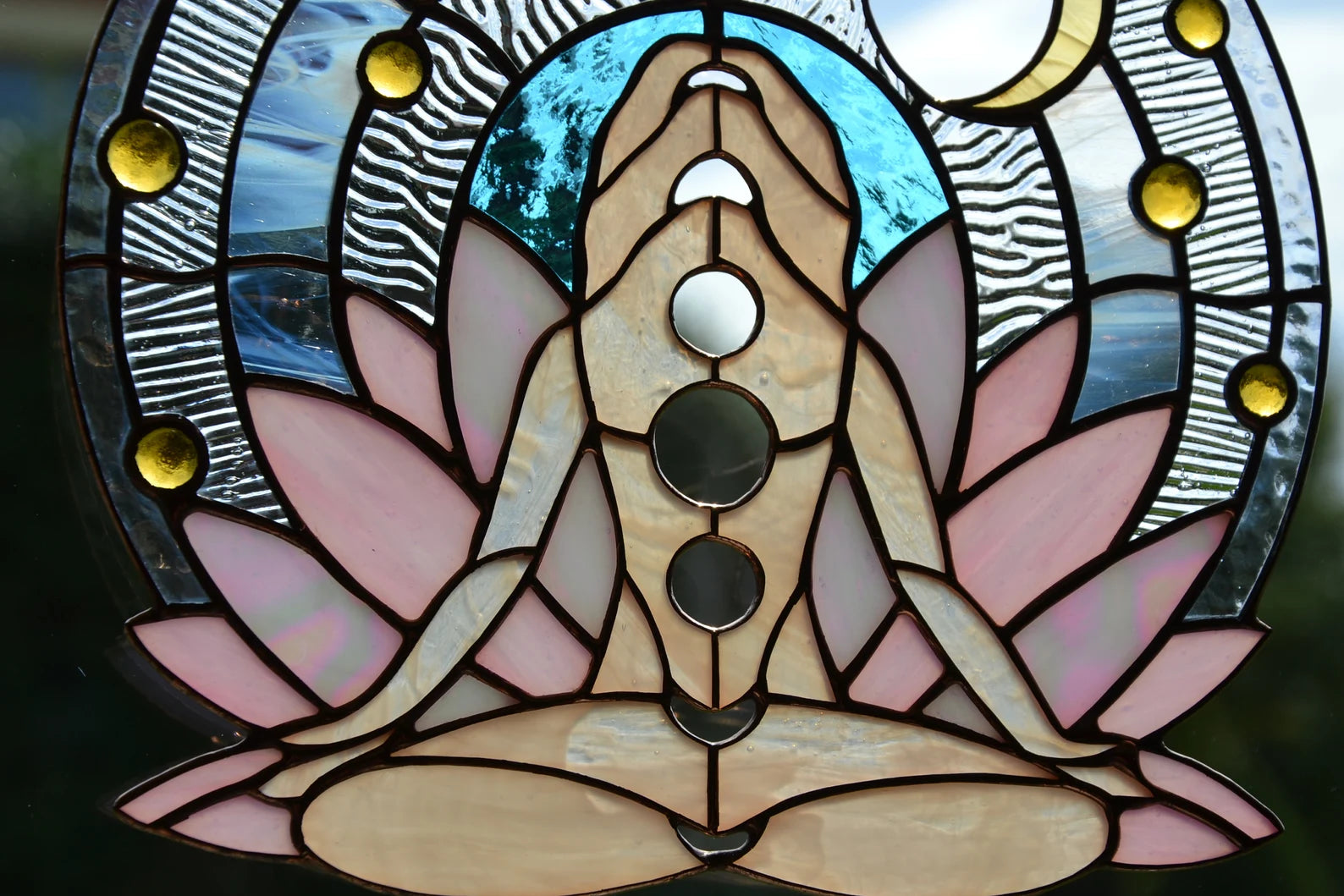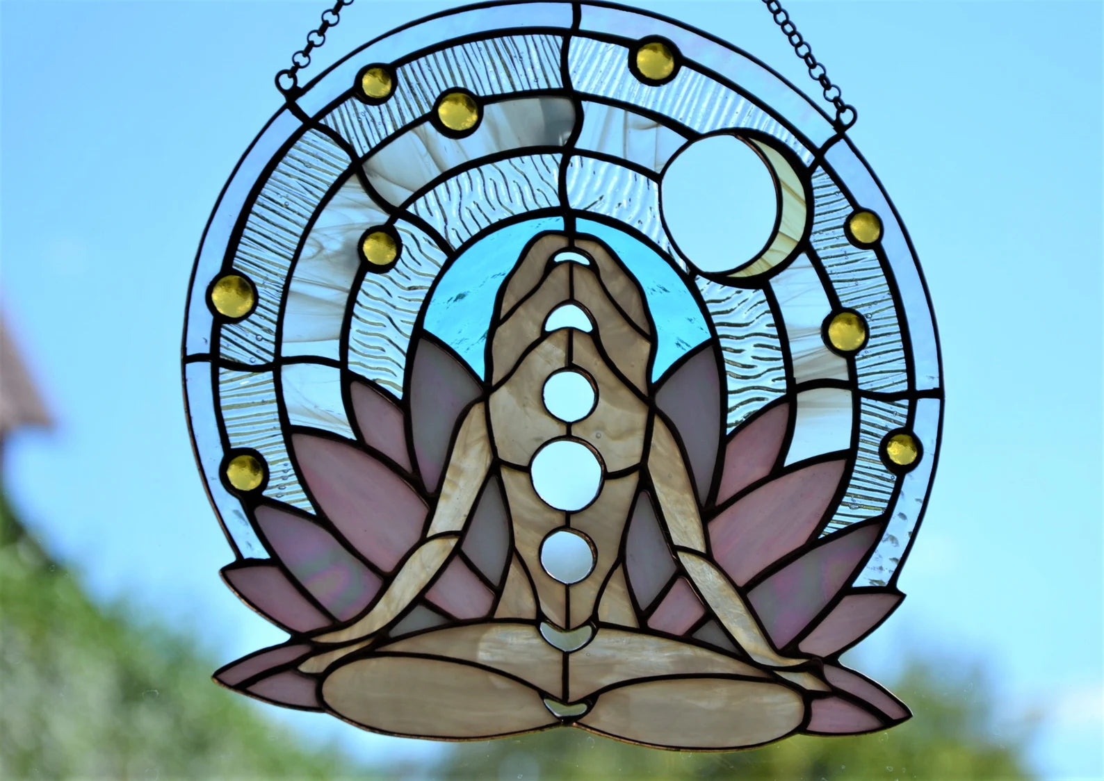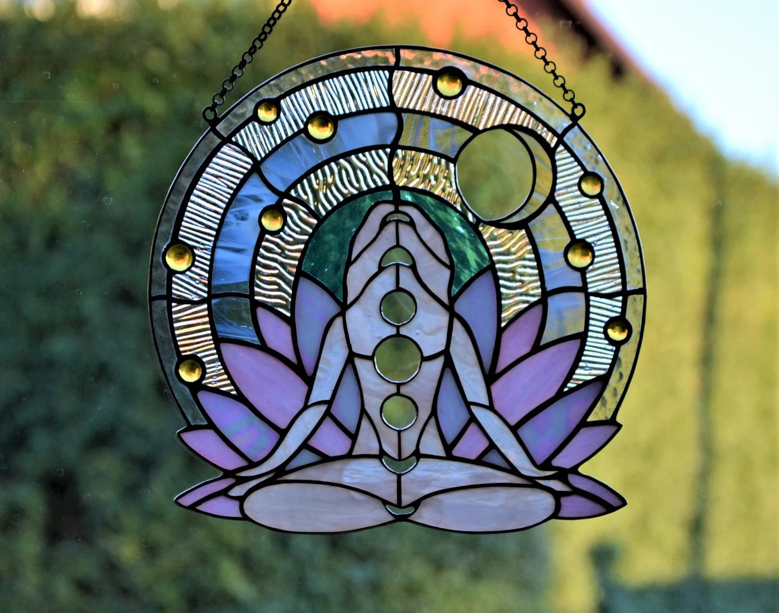 Stained glass suncatcher Woman lotus pose Glass window hanging Gifi for her Yoga lover Chakra Positions Wall decor Living room decor Xmas