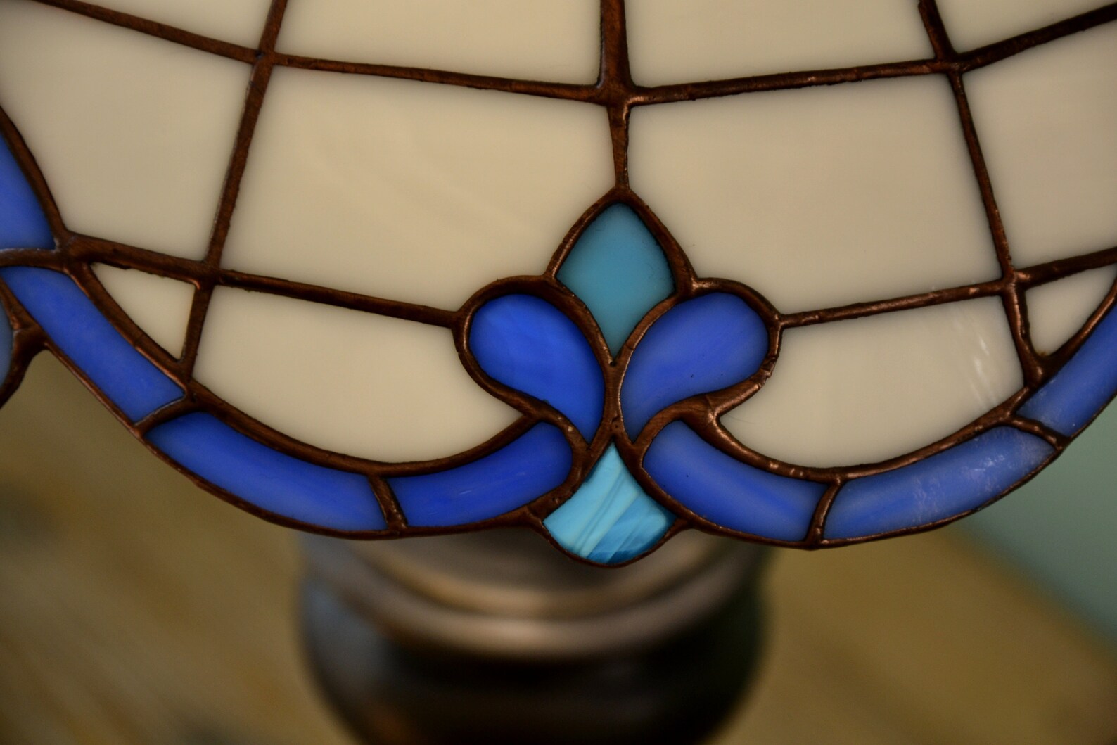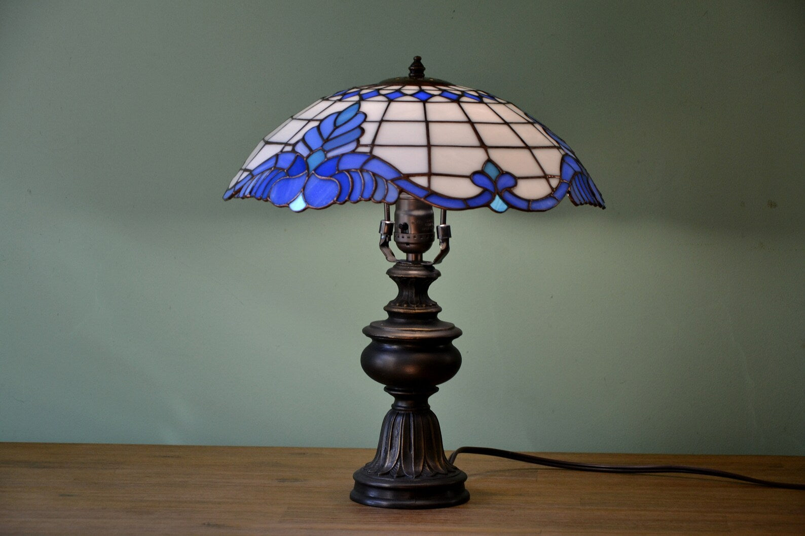 Stained glass table lamp Tiffany style Classic Tiffany design Desk lamp White & blue lamp Baroc pattern Mother's day gift Living room decor