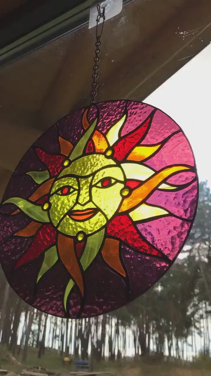 Celtic Sun window hanging suncatcher made of stained glass pieces by my own disign.