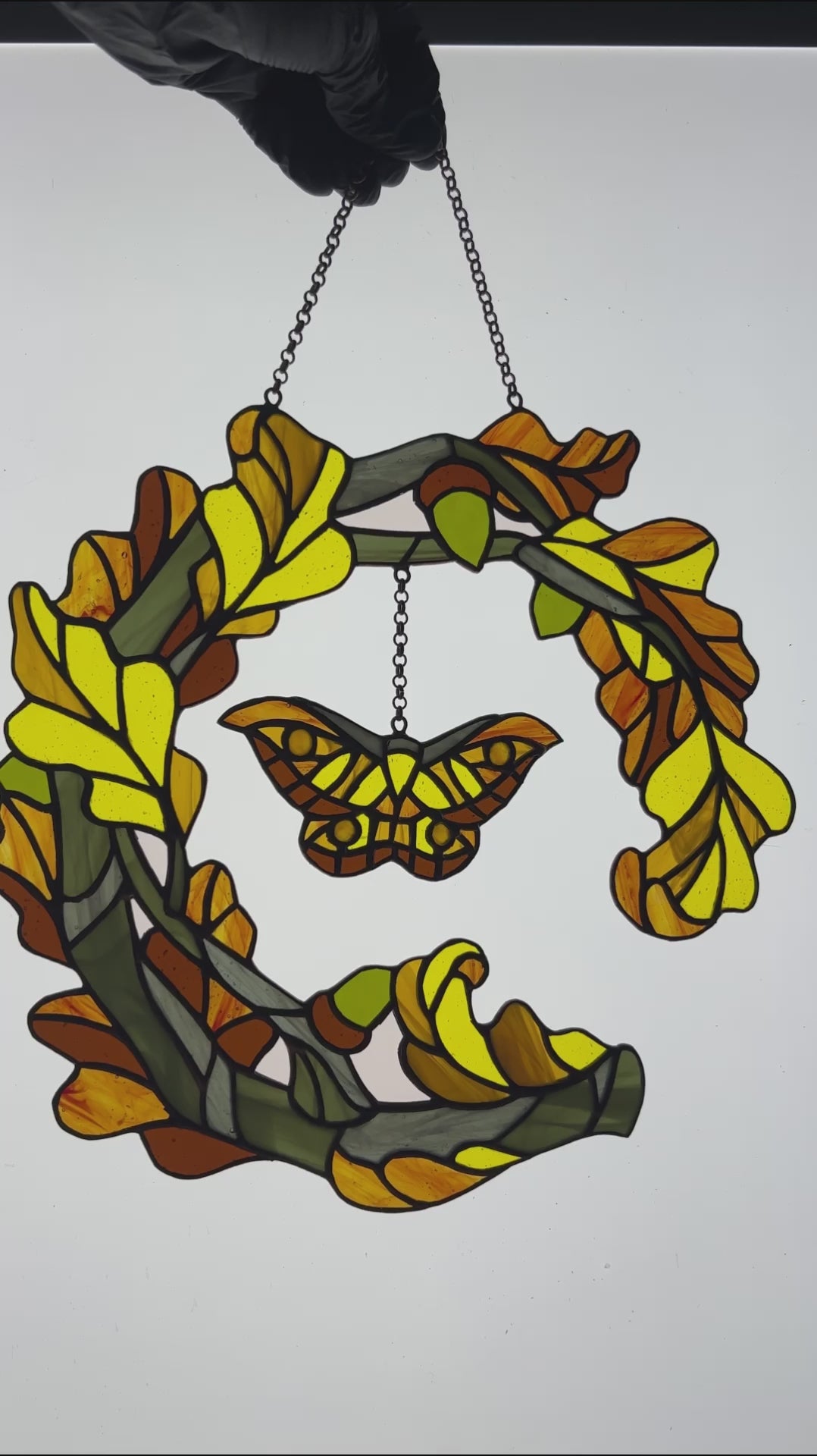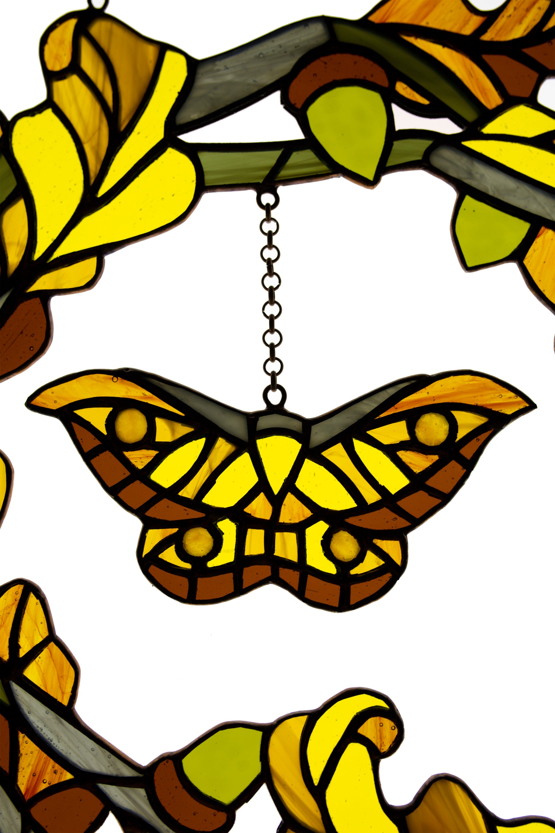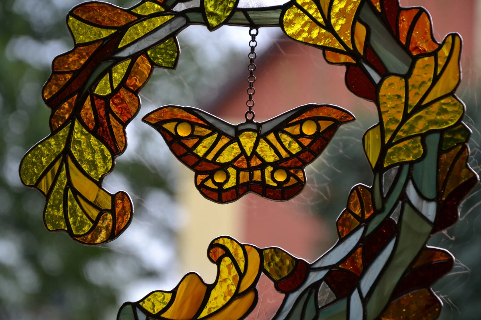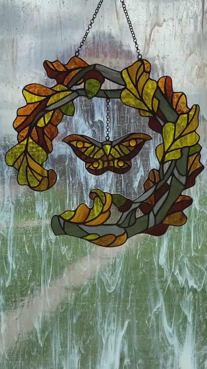 Stained glass window hanging Fall wreath Glass butterfly Living room decor Christmas gift Wall decor Stain glass pendant Garden glass art