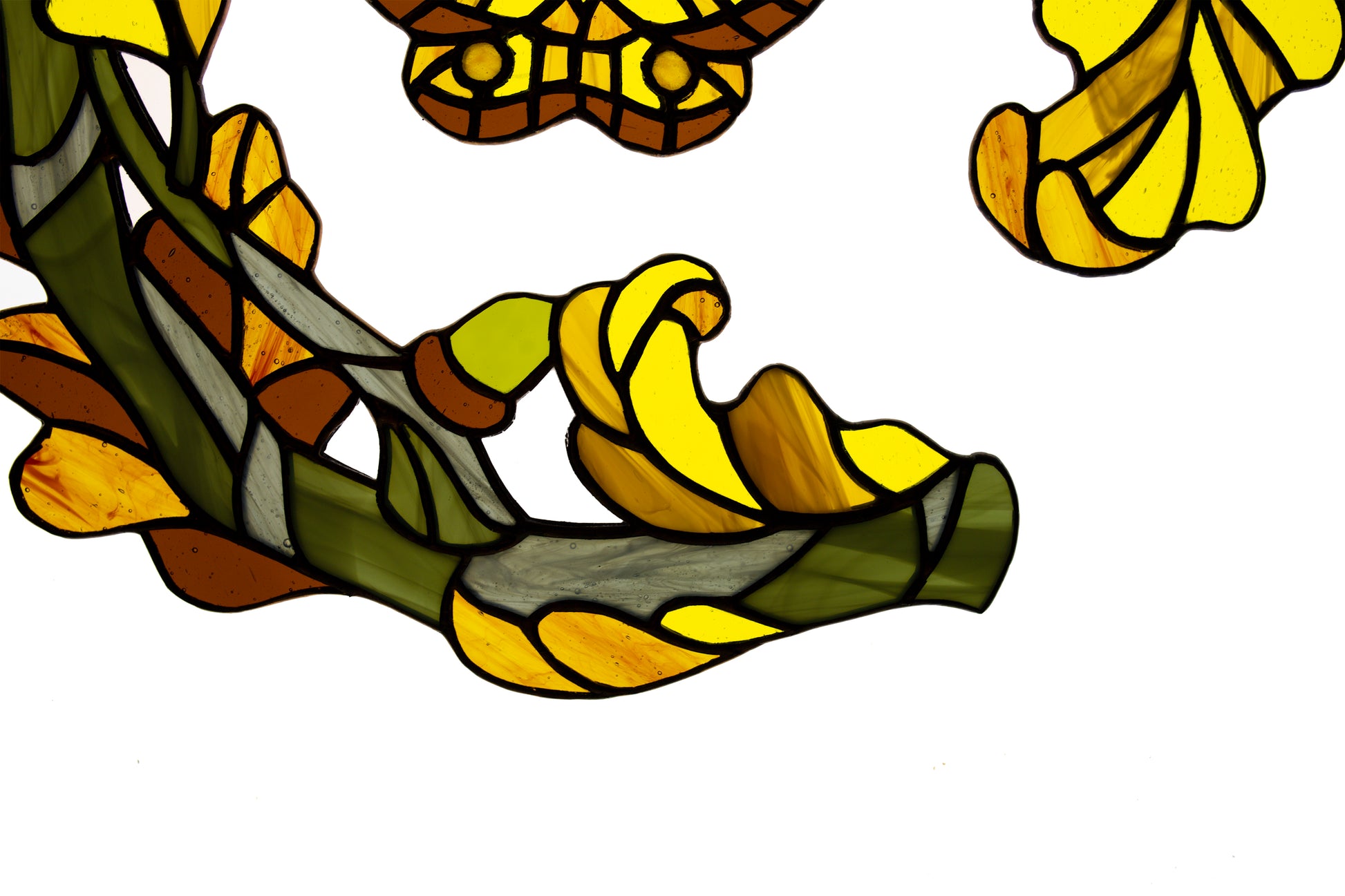 Made from glass pieces using the Tiffany copper foil technique. Number of glass pieces 160.