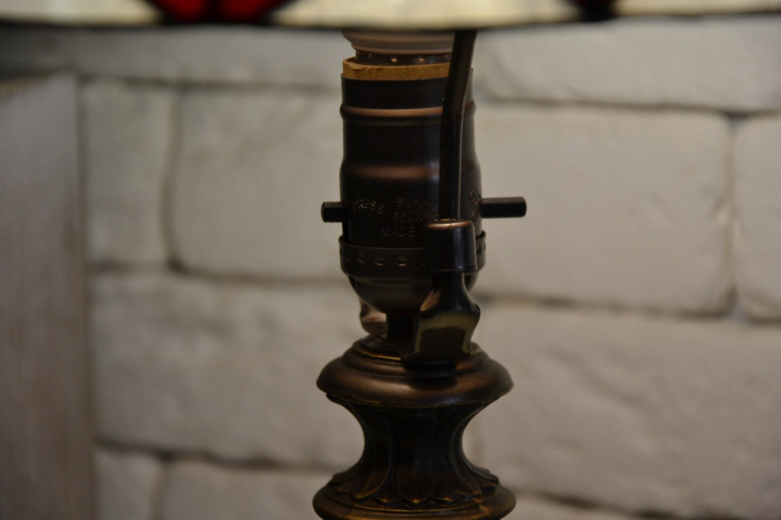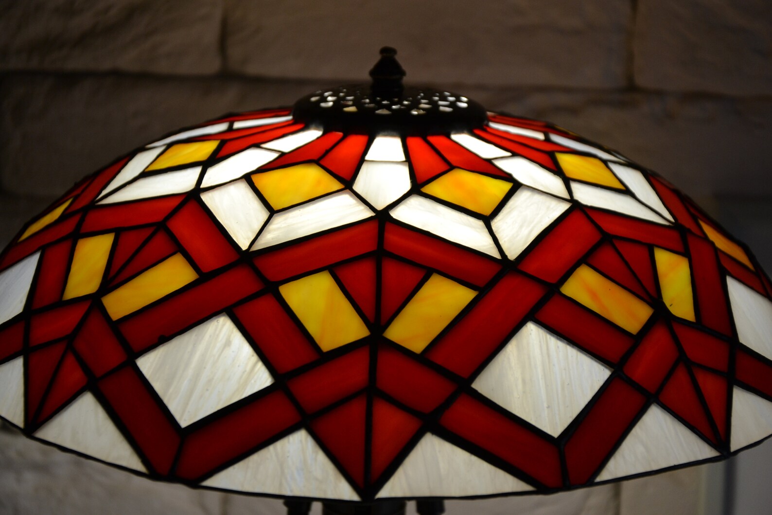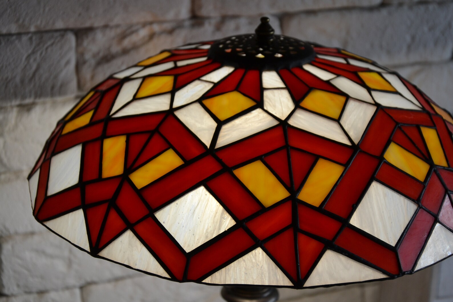Tiffany lamp Stained glass lamp Geometric pattern Red table lamp Desk lamp Bronze base Mother's day gift