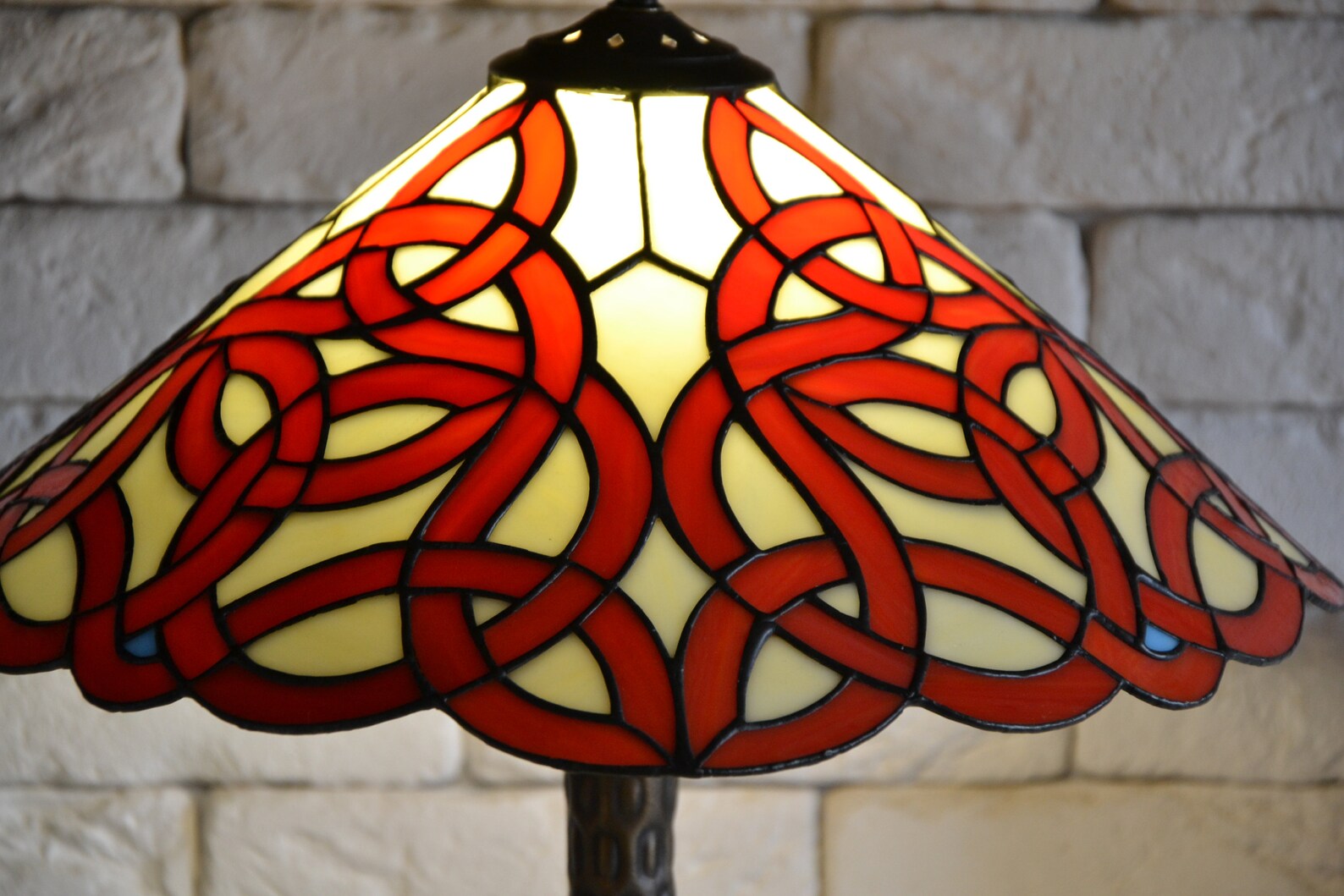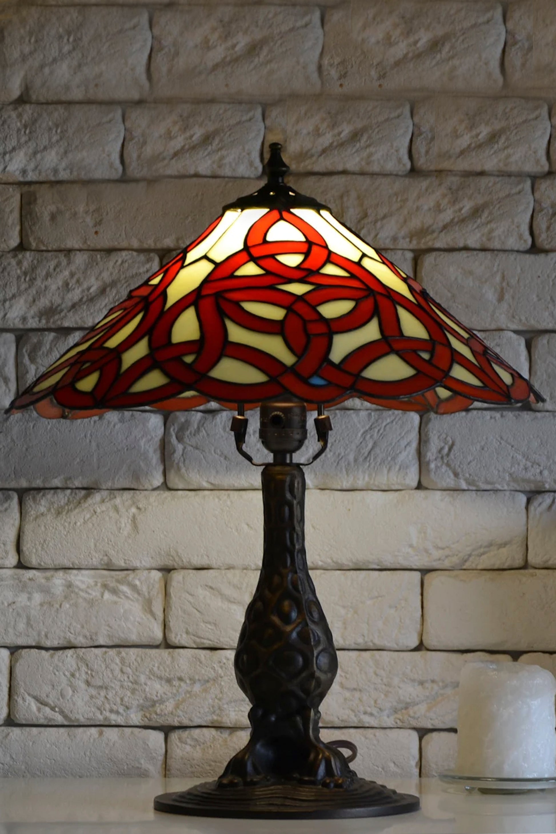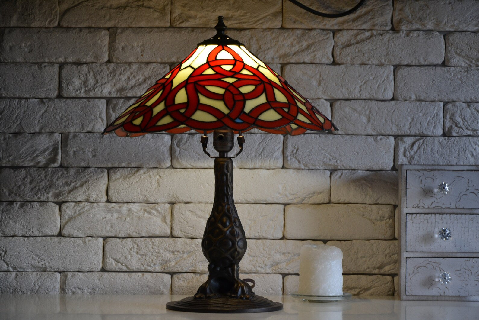 Tiffany lamp Table lamp Stained glass desk lamp Mother's day gift Uroboros pattern Tiffany style lamp Bronze base Red lamp